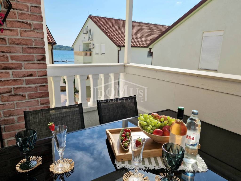 Attractive location 2nd row to the sea/beach (20m) there is an apartment of 72.18m2. The apartment is located in the attic of a residential building and is oriented to the southwest. It consists of two bedrooms, a bathroom, a gallery, a kitchen with a dining area and a living room with access to a terrace with a sea view. The apartment was renovated in 2022. It is fully furnished and is included in the price of the property. The apartment also has one parking space of 12.50m2. It is 950m from the town center.