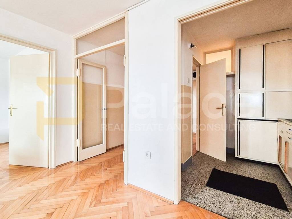 The apartment requires some renovation measures, but its basic structure is solid and provides numerous possibilities for remodeling. The southeast orientation ensures plenty of natural light and pleasant warmth throughout the day, creating a cozy atmosphere in all rooms.