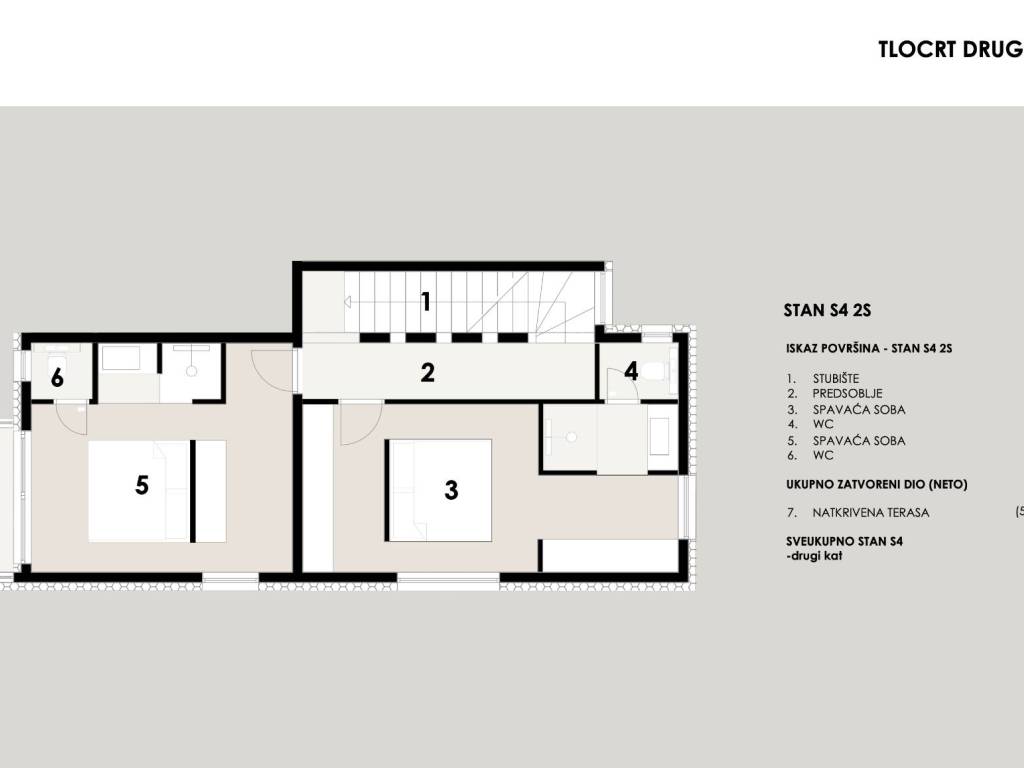 2. KAT - Na drugom katu smještena su dvije luksuzne spavaće sobe s vlastitim kupaonicama, svaka soba ima izlaz na terasu, savršenim za uživanje u privatnosti i miru.