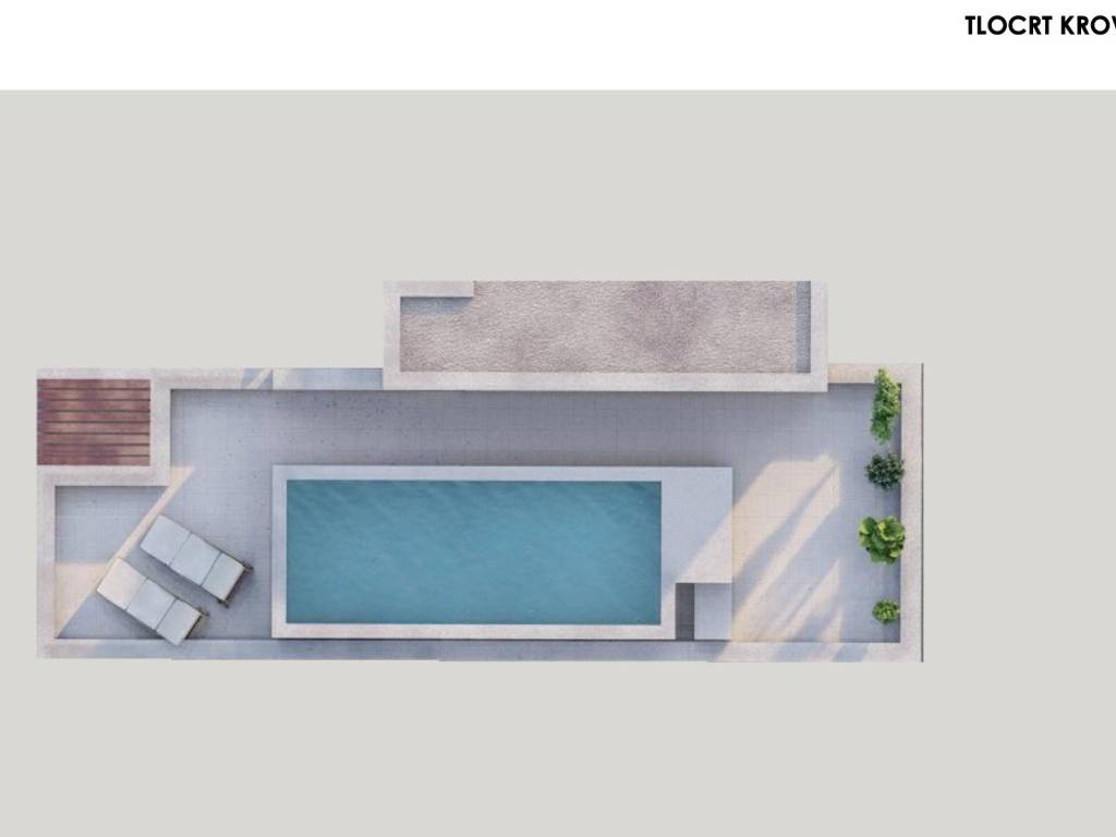KROVNA TERASA – Zaista zapanjujuća krovna terasa s bazenom od 20,86 m² nudi spektakularan pogled na more i prostor za opuštanje. Osim toga, budući vlasnik ima mogućnost ugraditi vanjsku kuhinju zahvaljujući svim potrebnim instalacijama koje će biti provedene.