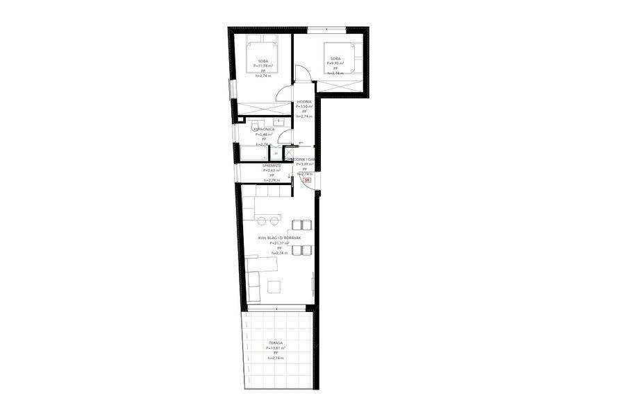 For sale is a comfortable two-bedroom apartment in a great location in Okrug Gornji, on the southern side of the island of Čiovo, known for its beautiful beaches, crystal clear sea and pleasant Mediterranean climate. It is located only 15 minutes walk from the town center and all the amenities on the island that make it an attractive place to live and vacation, including shops, restaurants, cafes, beaches and recreational facilities. The apartment is southwest-facing and located on the first floor of a residential building with a total of 4 floors, and is adorned with quality equipment and modern furnishings that ensure a high level of comfort and functionality. The building is built according to modern standards, with quality materials and equipment. The apartment has two spacious bedrooms and a total of 57.80 m² of interior space, which includes a living room with dining room, kitchen, hallway and bathroom. In addition, the apartment has a 13.81 m² terrace. In the basement of the building there is a garage parking space, which is included in the price and ensures safe parking and additional comfort. Heating and cooling are provided by air conditioning in each room, while the bathroom has underfloor heating, which provides additional comfort, especially during the winter months. The future owner has the right to choose the tiles and sanitary ware in the apartment, as well as the room and entrance doors, which allows the interior to be adjusted to their own wishes and style, at no additional cost. The apartment is an excellent choice due to its attractive location, pleasant surroundings, modern equipment and proximity to all necessary amenities. Also, a great advantage is the proximity of the Split International Airport, which is only 8.5 km away, which makes this property extremely suitable for both tourist rental and year-round living.