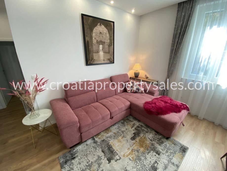 Large, renovated apartment in the center with parking space.It is located on the high ground floor of a smaller building.The apartment is 80 m2 and is divided into two units (50 m2 and 30 m2).Each unit has a bedroom, bathroom and living room with kitchen and dining room.The apartment was completely renovated in 2020, categorized and established in tourism.It is located in a great location close to all important amenities.