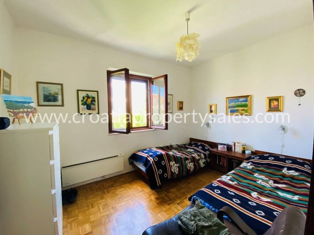 Charming house in a quiet part of the town, ideal for family vacations and living.The house is located in an exceptional location, only 400 m from the sea, surrounded by greenery, so it offers an extraordinary combination of peace and proximity to all amenities.Right next to the house is a 20 m2 house consisting of a kitchen, bathroom with shower and a living area intended for sleeping. Behind the house is a 10 m2 storage room.The main building, i.e. the house, has 74 m2 of living space and a 39 m2 terrace overlooking the garden and a small sea view.The house consists of two bedrooms, a bathroom, a toilet, a hallway, a living room and a kitchen.The living room leads to a spacious terrace which is an indispensable part of life on the island, since we spend most of our time outside.The land area is 602 m2 and there is a garden with Mediterranean plants and olive trees next to the house, and there are 4 parking spaces.The rooms are covered with Glamox panels, so it is possible to live there all year round.There is also air conditioning installed, which can heat and cool the entire space. It is possible to upgrade.This house offers a unique opportunity to enjoy the Mediterranean lifestyle, and thanks to its prime location and additional apartment, it is also ideal as an investment for tourist rental.