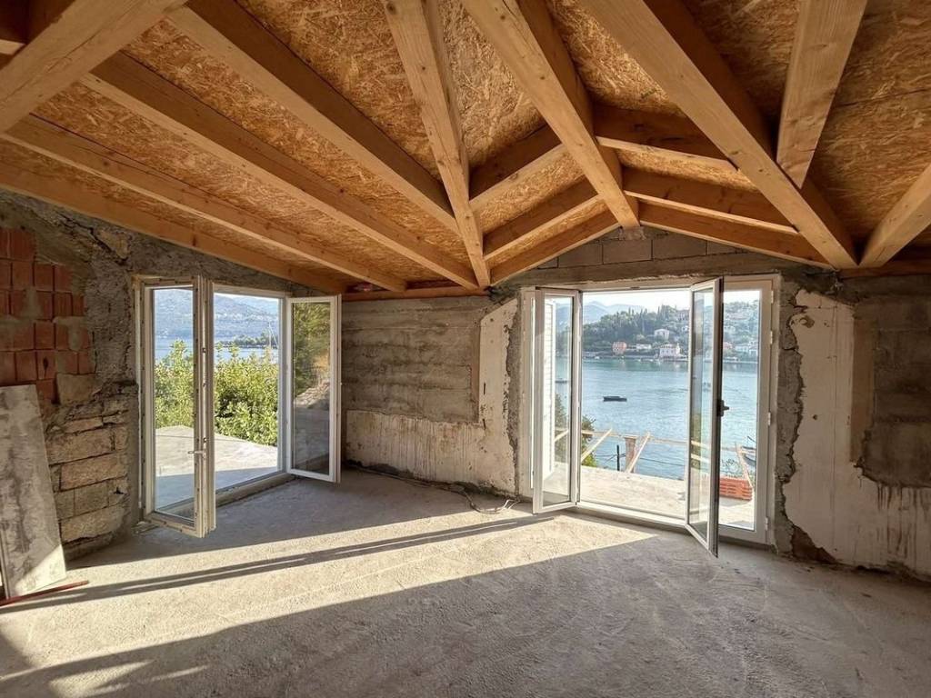 A semi-detached property in an excellent location in the first row to the sea with a land area of 124 m2 near Dubrovnik is for sale. The house is located on an island in the Dubrovnik archipelago. The property consists of a larger and a smaller building that are connected. The larger building is a stone house in rough unfinished condition with newly installed joinery and roof and requires complete renovation. The smaller building is a storage room. The stone house provides complete privacy and has a total gross of 100 m2 of living space spread over two floors: The first floor on the ground floor consists of a bathroom, a smaller and a larger room. Both rooms have access to a 60m2 terrace with a well below. On the second floor in the high attic there is a room with access to a 4 m2 balcony and a 20 m2 terrace. Each of the rooms has a window and all rooms have a beautiful view of the sea. It is important to note that there is a project with the layout of the rooms in the stone house. The entire infrastructure is present except for the sewage system (the house has a septic tank). The distance from the center of Dubrovnik is 8 km as the crow flies. Due to its prime location, this property is ideal for a buyer who wants peace, proximity to the sea and complete privacy.