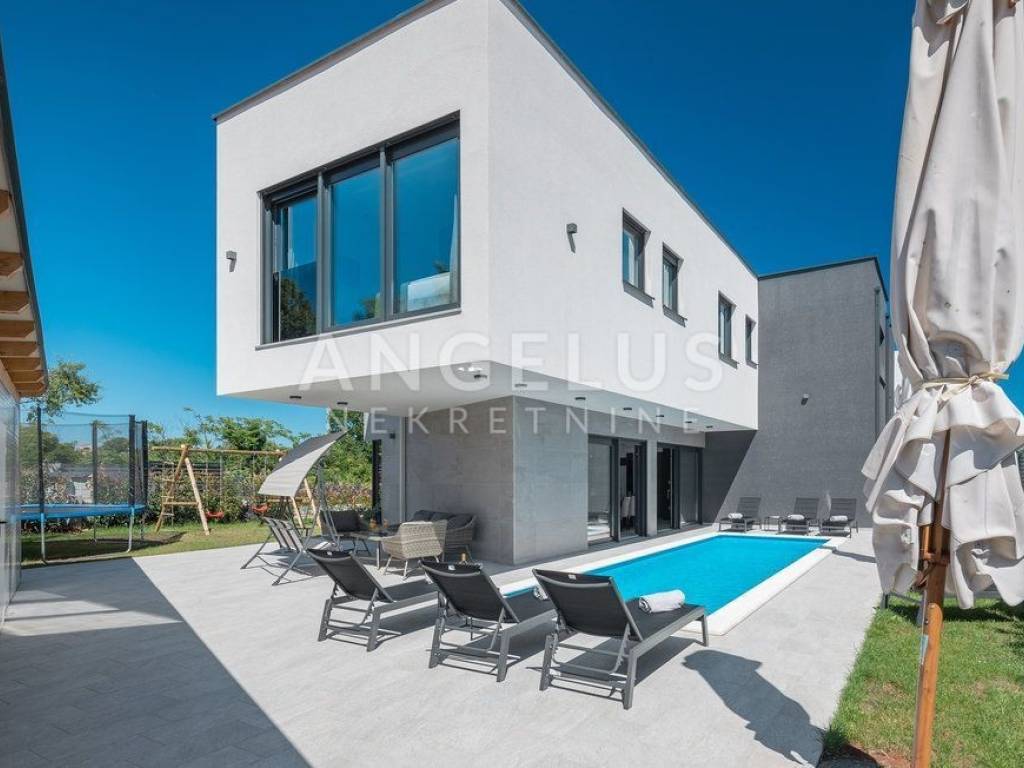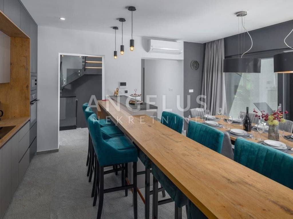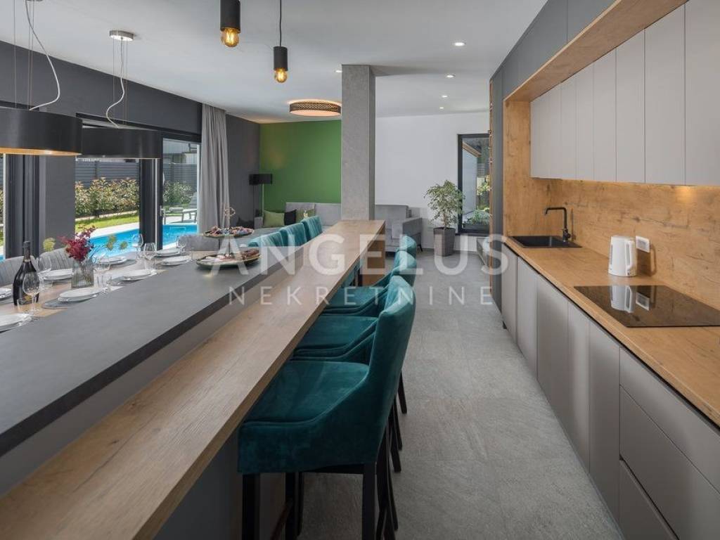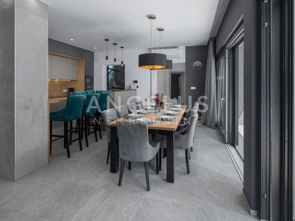 DESCRIPTION: This modern villa with a swimming pool is a true architectural marvel of modern times. The spacious villa offers plenty of space for several families and friends with whom you can spend pleasant moments in the peace of the location. The house consists of 8 bedrooms and a total of nine bathrooms and offers plenty of space to accommodate guests. The living area of the house consists of a large living room, kitchen and dining room in an open space concept, from which large glass walls offer a view of the large swimming pool (34m2) that occupies a central place in the exterior of this luxurious building.
