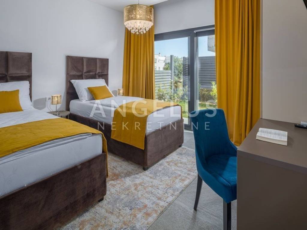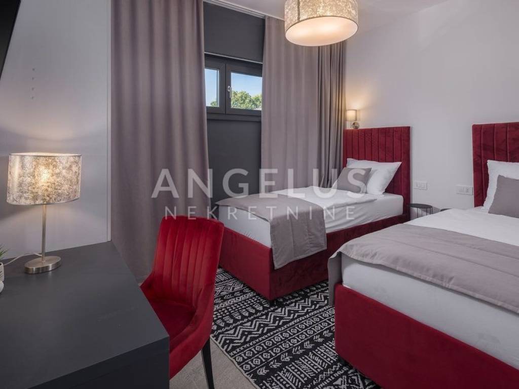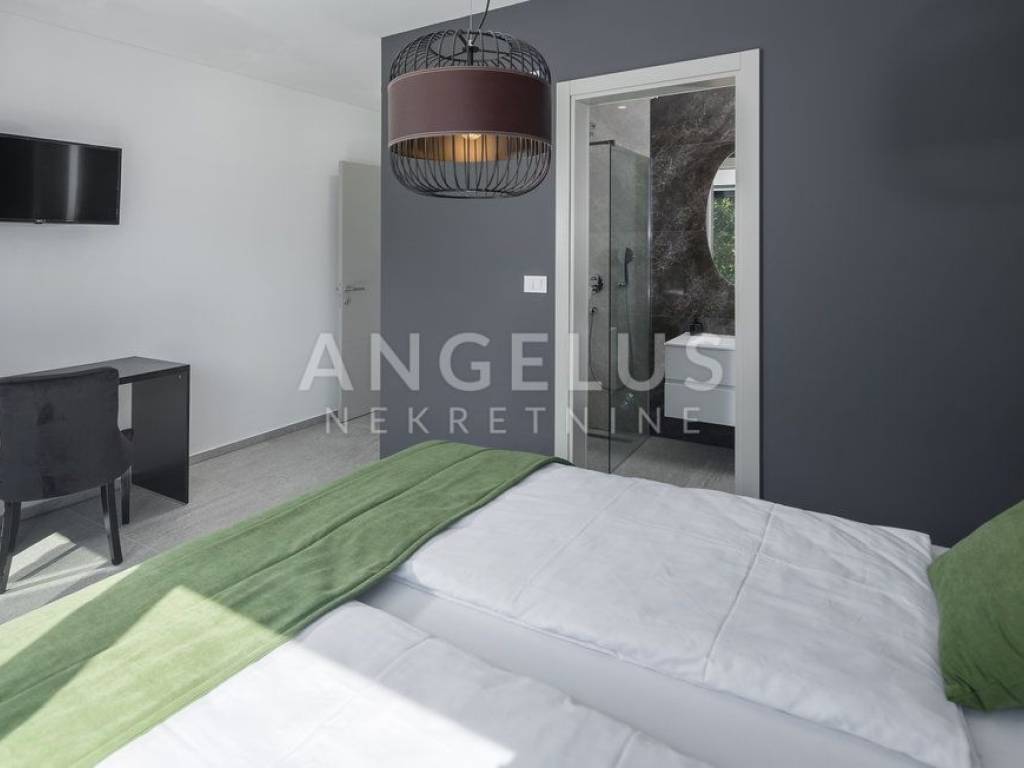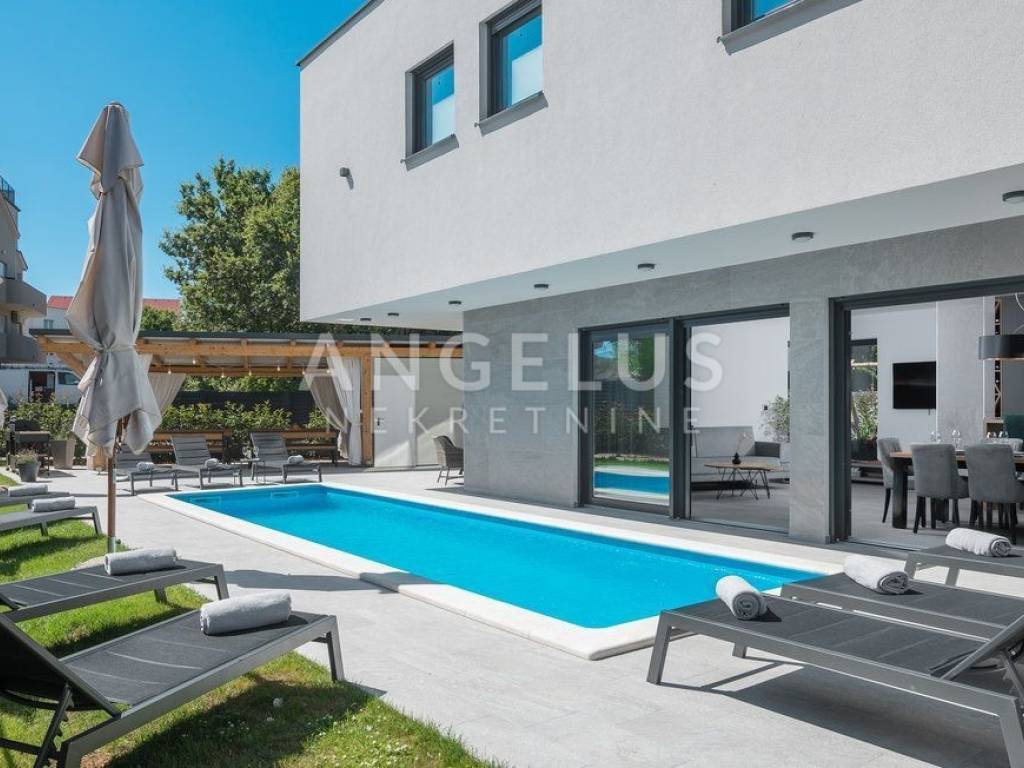DESCRIPTION: This modern villa with a swimming pool is a true architectural marvel of modern times. The spacious villa offers plenty of space for several families and friends with whom you can spend pleasant moments in the peace of the location. The house consists of 8 bedrooms and a total of nine bathrooms and offers plenty of space to accommodate guests. The living area of the house consists of a large living room, kitchen and dining room in an open space concept, from which large glass walls offer a view of the large swimming pool (34m2) that occupies a central place in the exterior of this luxurious building.
