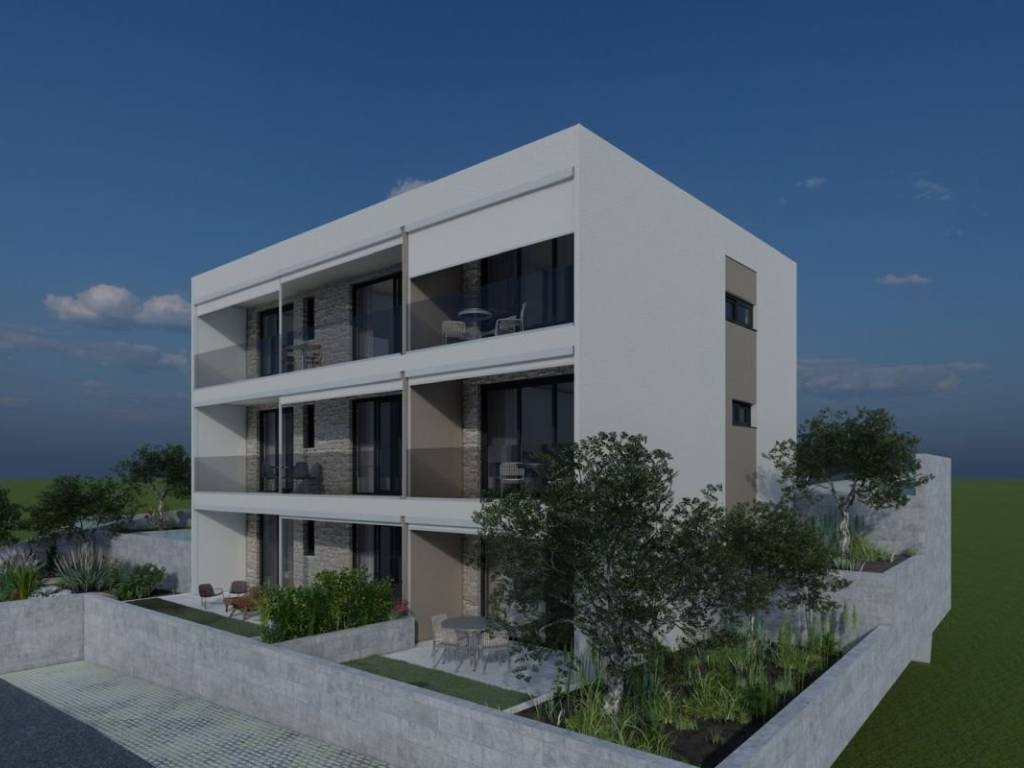 A beautiful apartment located on the island of Šolta, is located in a small residential building consisting of four residential units. The property is located in Stomorska, known as a small fishing village on the island of Šolta. The property is located in the immediate vicinity of the sea, beaches and the town center, and the property is only a few minutes walk from the ferry port.   The apartment is located on the first floor of the building, and covers 58.40m2 of living space, and has two balconies with a total area of 13.76m2. The layout of the apartment exudes functionality, and consists of an entrance hall that leads to an open space where the kitchen, dining room and living room are located. From the living room you can directly exit to the balcony that is ideal for enjoying throughout the day. From the living room, the hallway leads to a bathroom, one bedroom, and a master bedroom with a bathroom, as well as an exit to another balcony. The apartment also comes with an outdoor parking space, and as an additional benefit, all tenants have the right to use the swimming pool located on the ground floor of the property, which offers a view of the sea.   The planned start of construction is expected in the fall of 2025, and the completion of construction is expected in the fall of 2026.