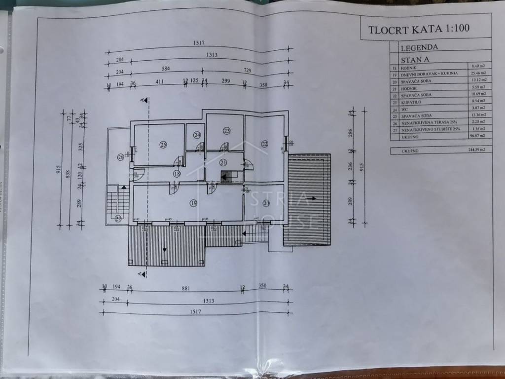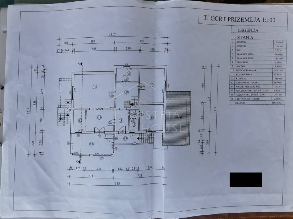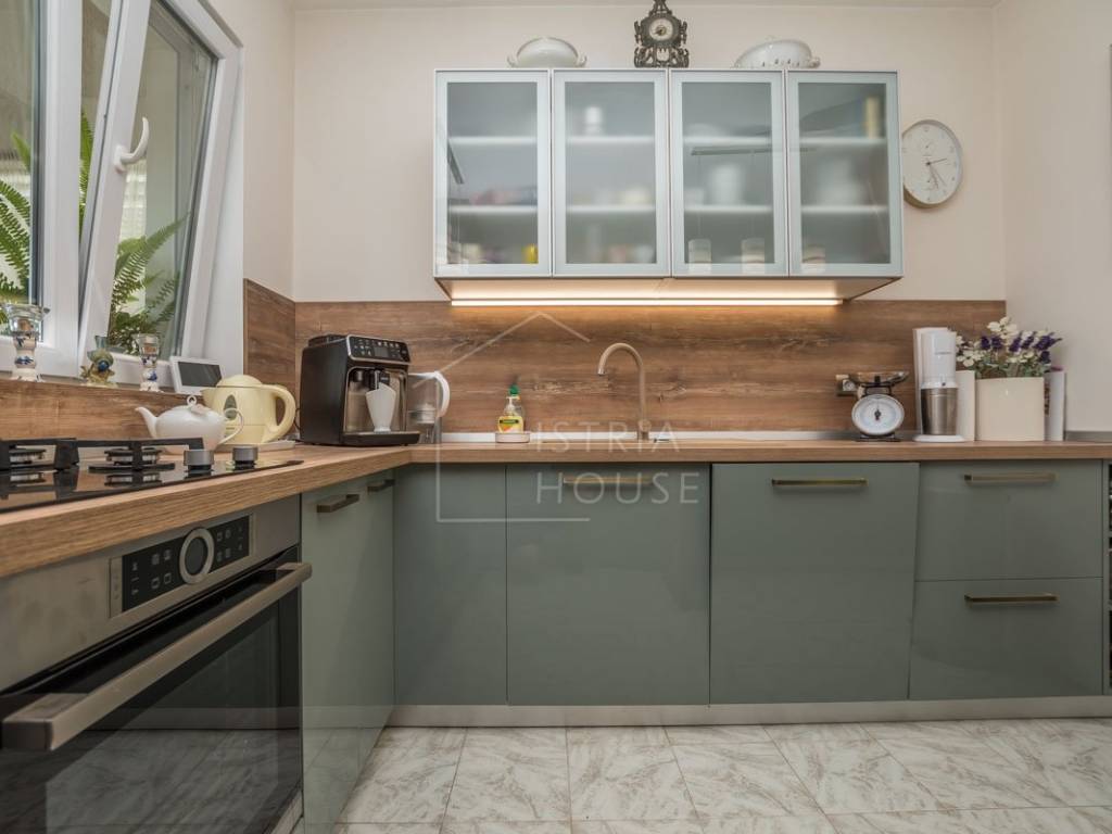 House with two apartments for sale, 5 km from the center of Porec, the sea and the beach. The house is located on a plot of 857 m2 and a net area of ​​202 m2.