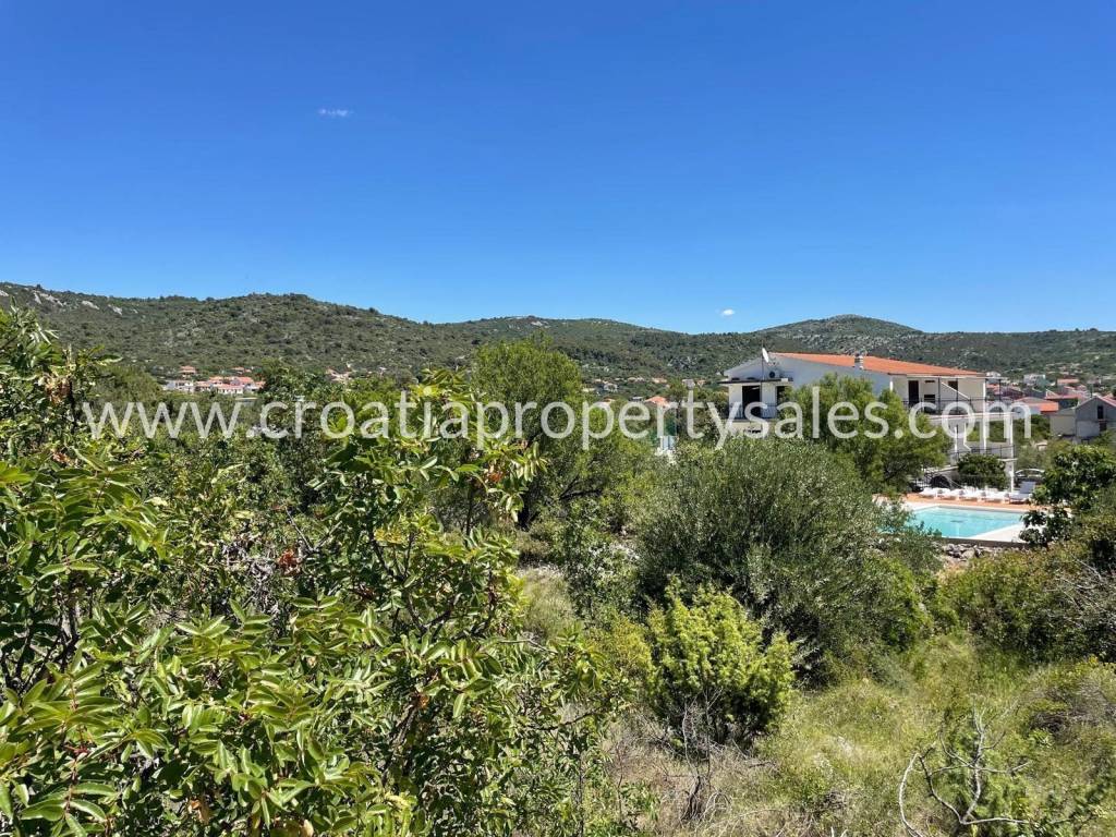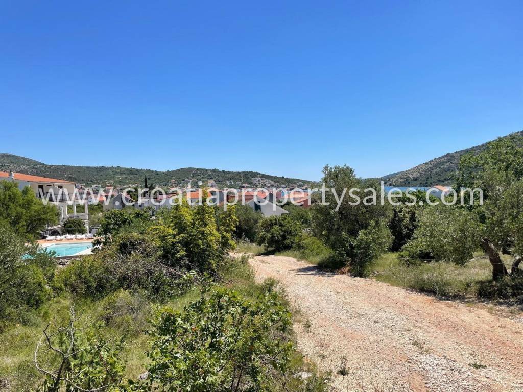 Veliko građevinsko zemljište u selu 20 minuta od Trogira u prekrasnom i mirnom okruženju, samo 10 minuta hoda do plaža i kafića.Komunalije su na cesti ispred parcele. Udaljenost od mora je 300m, a najbliži supermarket je udaljen 1km.Najbliži grad s ljekarnom i liječnicima je Marina, udaljena 6km.