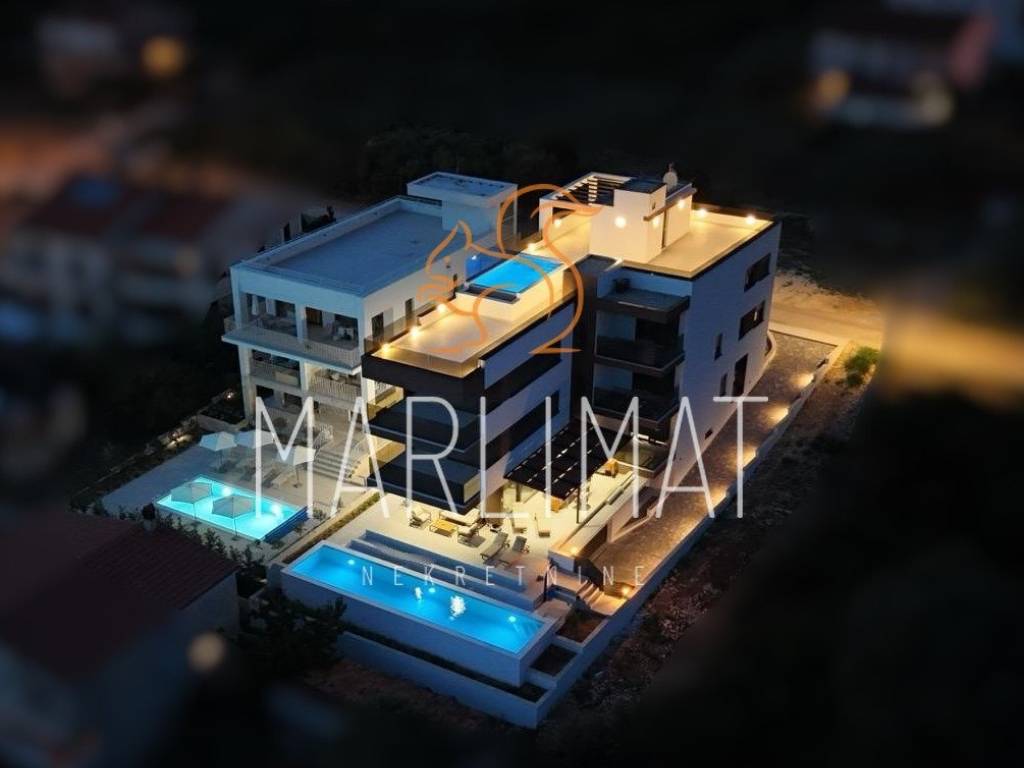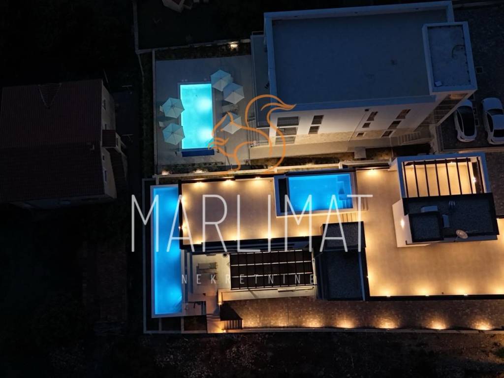 Apartmanu pripada i okućnica veličine 263m2 u kojoj se nalaze i  GRIJANI BAZEN veličine 13×3 m sa panoramskim pogledom na more.