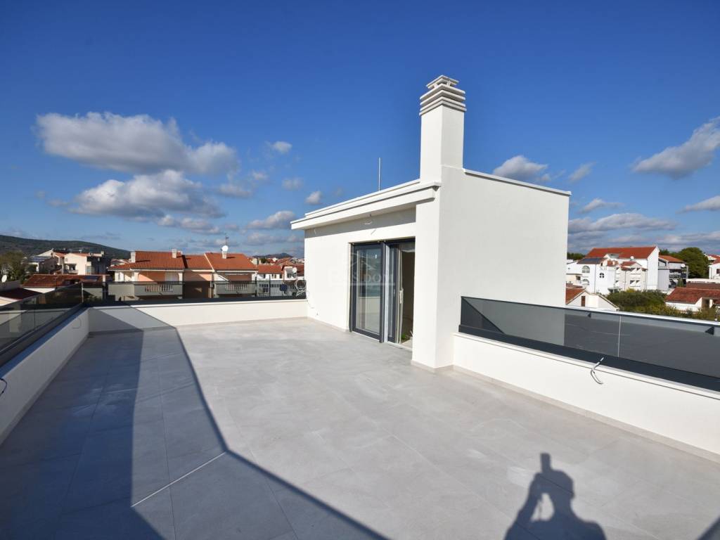 Vodice-*NOVOGRADNJA** prodaju se komforni stanovi u manjoj stambenoj zgradi. Zgrada moderne arhitekture ima ukupno tri stambene jedinice i prostire se na 4 etaže: PRIZEMLJE+KAT+II KAT+KROVNA TERASA . Zgrada se nalazi na mirnoj lokaciji u blizini svih sadržaja bitni za kvalitetean boravak i stanovanje, od plaže udaljena oko 450m a od centra mjesta 750m. Trenutno se gradi kvalitetnim materijalima i biti će opremljena prema posljednjim standardima gradnje.Stanovi se prostiru po čitavoj etaži, mogu se koristiti za stanovanje tijekom cijele godine, povremeni boravak ili za ekksluzivni najam. Planirani rok završetka gradnje je travanj 2026. godine . Od opreme izdvajamo: