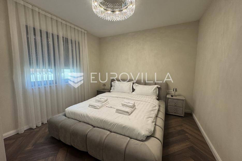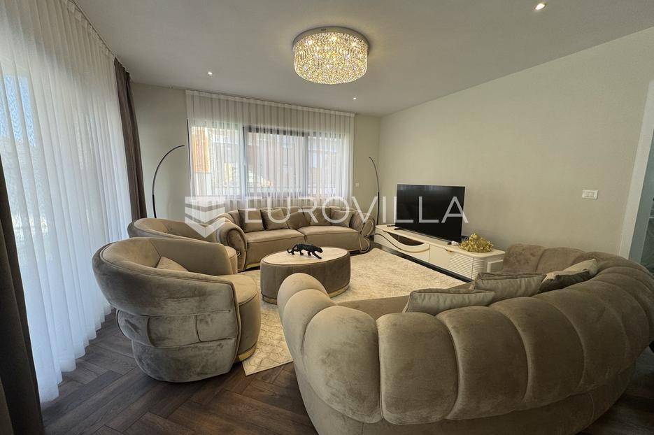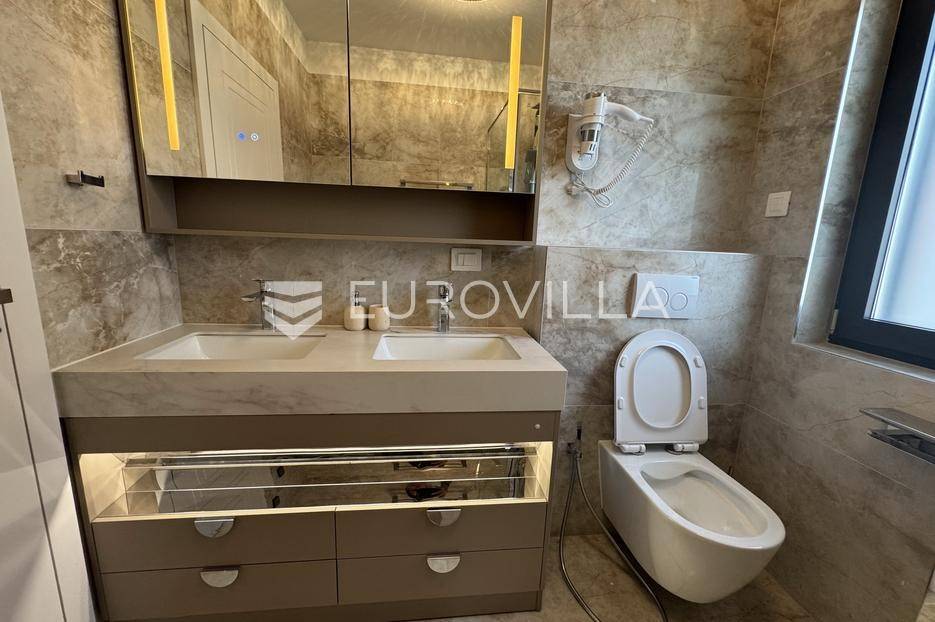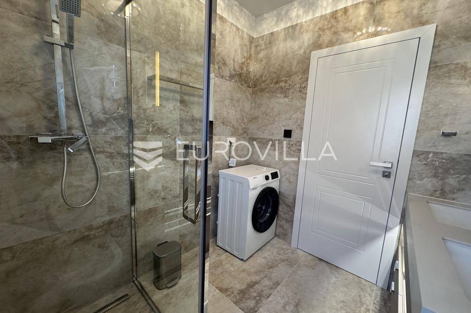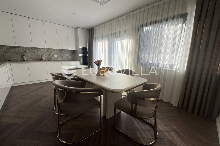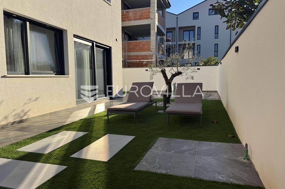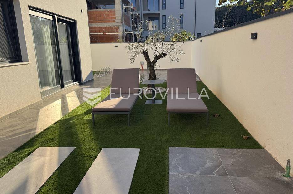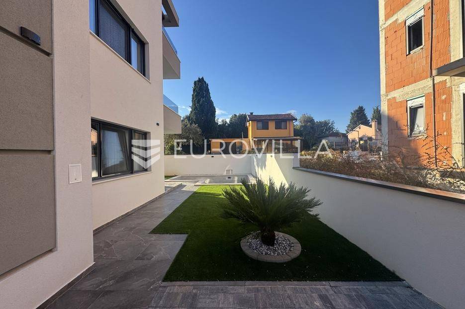 Istra, Rovinj, moderan i luksuzno uređen stan 130m2 s tri spavaće sobe u prizemlju novogradnje s vrtom i bazenom na svega 650 metara od mora.Stan zatvorene površine 118,74 m2 nalazi se prizemlju novogradnje a sastoji se od ulaznog dijela koji vodi u open space dnevni boravak, blagovaonu i kuhinju s izlazom na natkrivenu terasu s vrtom od 150 m2, ljetnom kuhinjom i bazenom 18 m2, master spavaće sobe s ensuite kupaonom, dodatne dvije sobe, gostinjske kupaone, ostave i toaleta.Sve prostorije u stanu su funkcionalne i estetski usklađene, a podno grijanje osigurava ugodnu temperaturu tijekom cijele godine.Stan je opremljen najnovijom tehnikom opremom, poput podnog grijanja, pametne brava s face ID, fingerprint, code i mogućnost otvaranja vrata putem telefona, klimatizacije Mitsubishi u svim prostorijama, modernih aparata Bosch i vrhunske sanitarije, aluminijske stolarije s troslojnim staklom, energetskim certifikatom A.Za više informacija stojimo na raspolaganju.