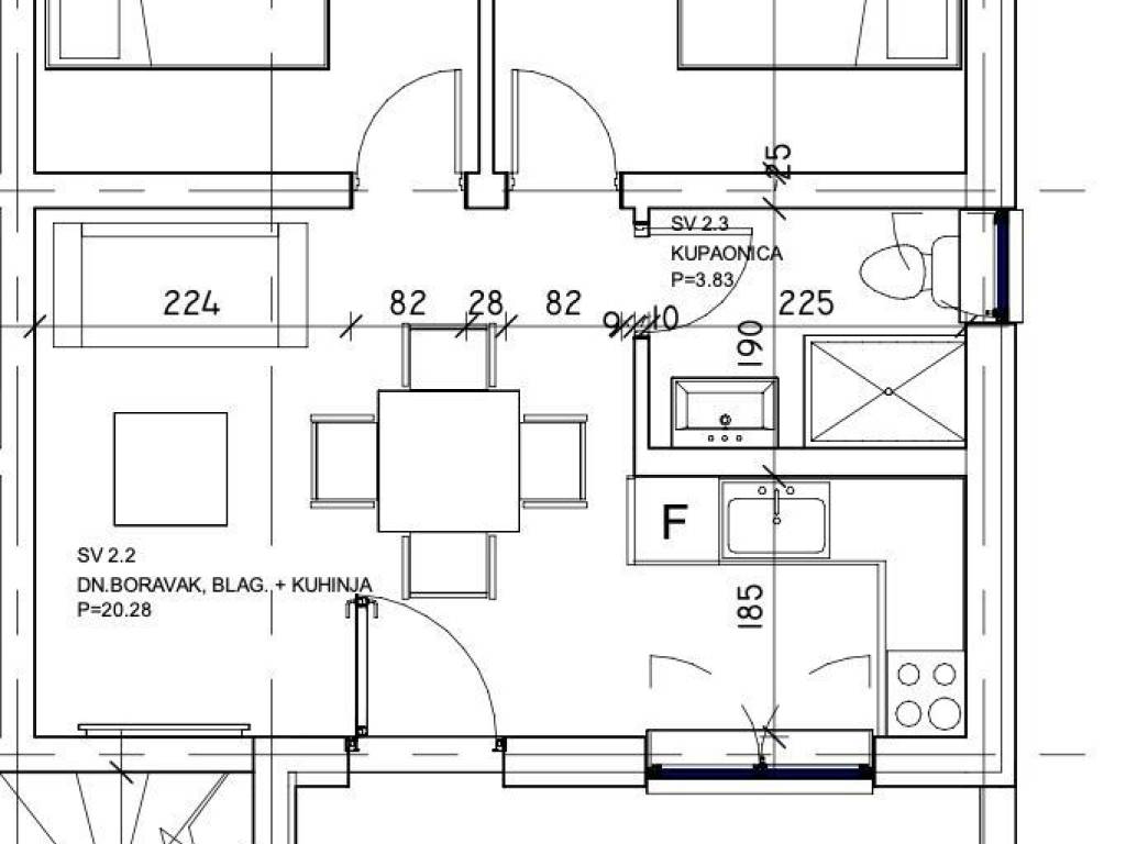 V4-51,79 m2, dvije spavaće sobe, natkrivena terasa, parking. CIJENA 220.000,00 EURA.
