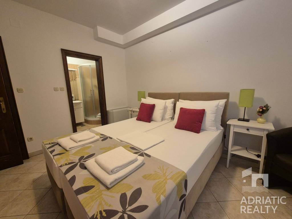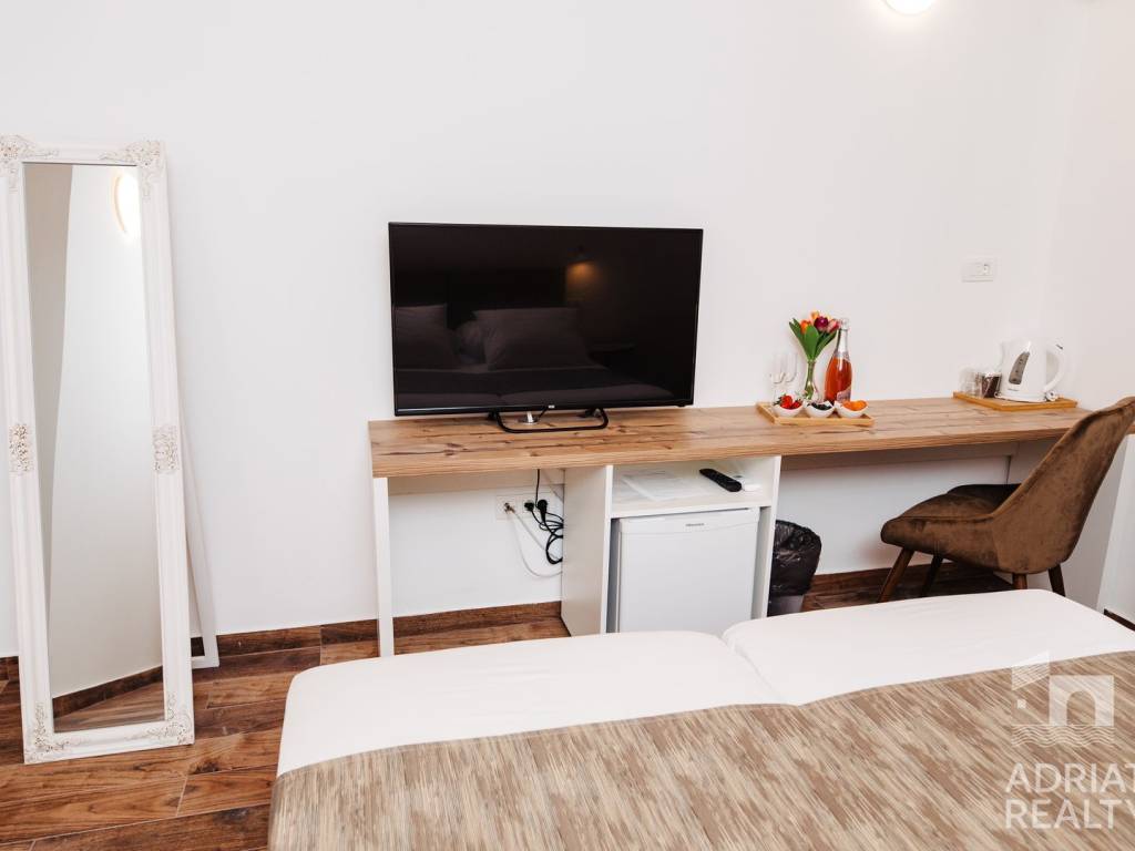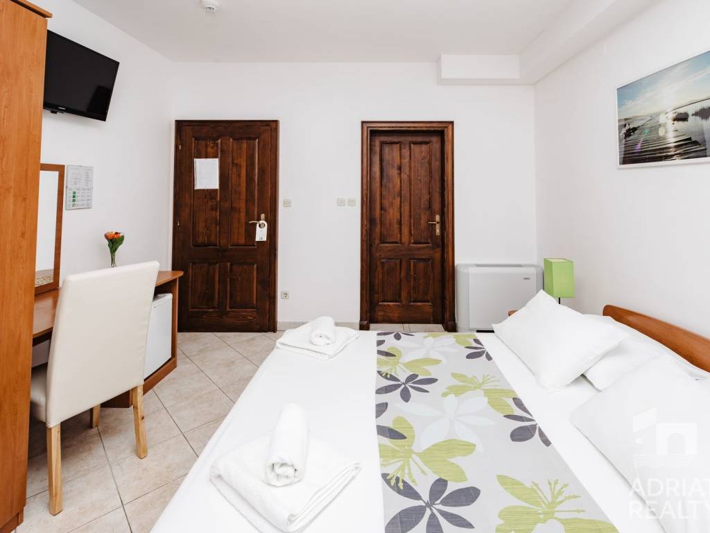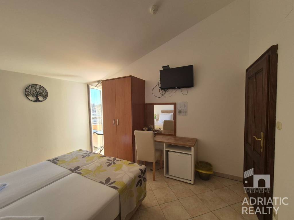 Prodaje se pansion s 20 soba, svaka opremljena vlastitom kupaonicom, smješten u blizini mora i marine. Sobe pružaju prekrasan pogled na more i Tribunj. Smješten je na idealnoj lokaciji – svega 5 minuta hoda od plaže i manje od 10 minuta do centra mjesta.