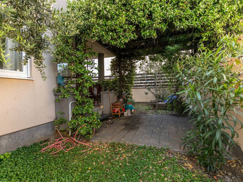 L'appartamento si trova al piano terra, occupa una superficie totale di 50,90 m2 con un giardino di 85,42 m2. Si compone di ingresso, cucina abitabile con sala da pranzo e soggiorno con accesso alla loggia o giardino, bagno, camera da letto e ripostiglio al piano interrato.