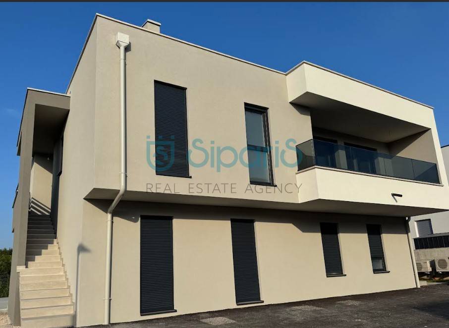 In a beautiful part of Umag, in the peaceful and green surroundings of Zambratija, just 300 meters from the sea and the beach (a 5-minute easy walk), a new luxury fully furnished duplex apartment with sea view is for sale.