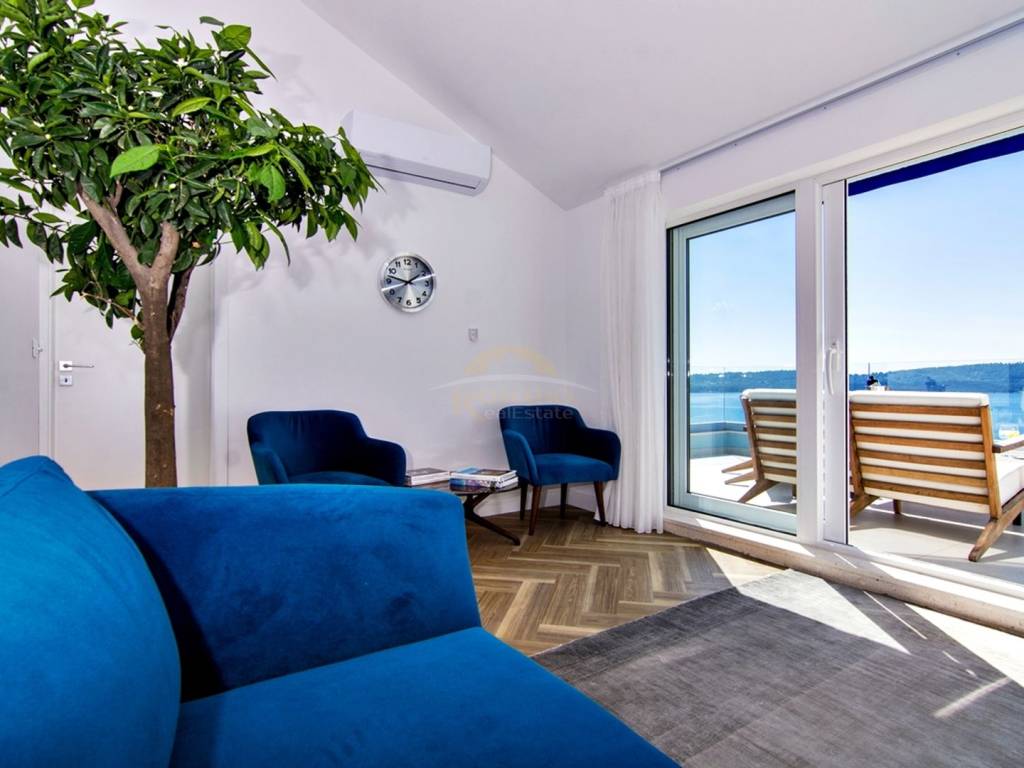 An enchanting terrace of 46 m2 extends from the lower floor, providing an ideal space to relax and enjoy the spectacular sea view.
