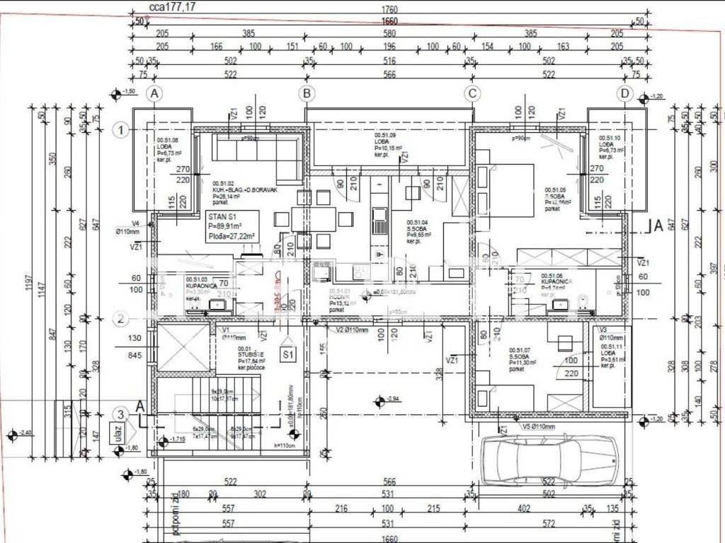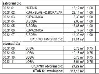 Stan S01 nalazi se u prizemlju i ima bruto površinu 132,29 m2 (117,13 m2 stan; 2,66 m2 spremište; 12,5 m2 vanjsko parkirno mjesto).