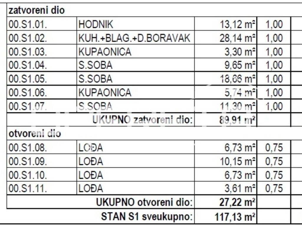 • Dnevnog boravka s kuhinjom i blagovaonicom otvorenog tlocrta s izlazom na dvije lođe