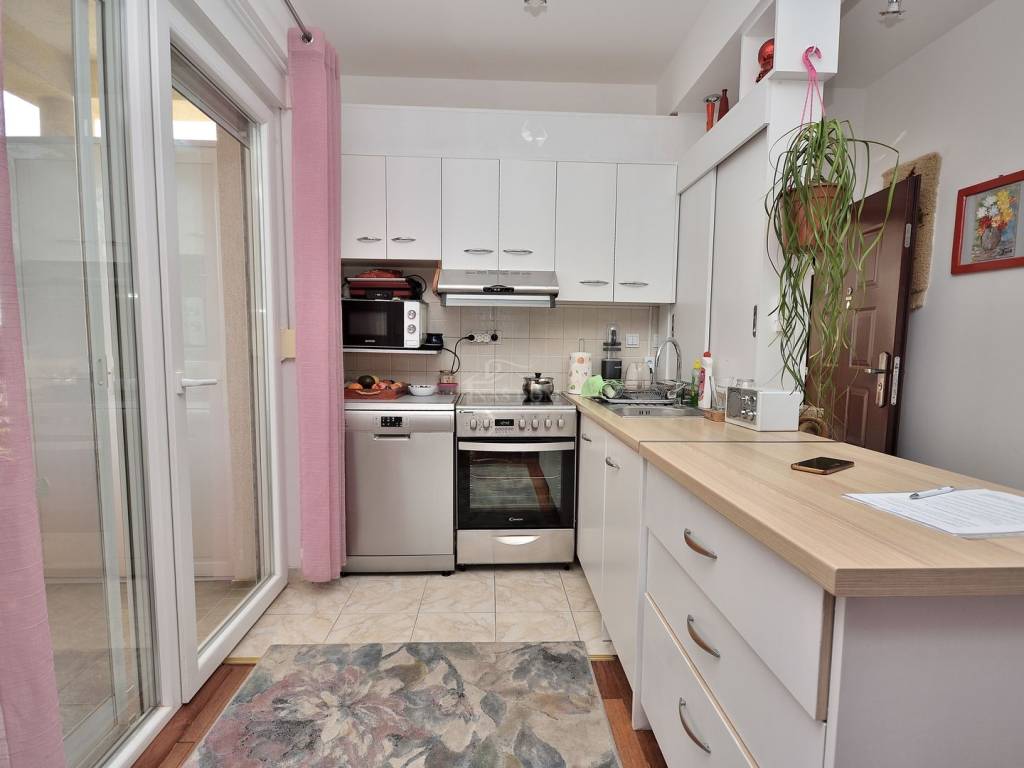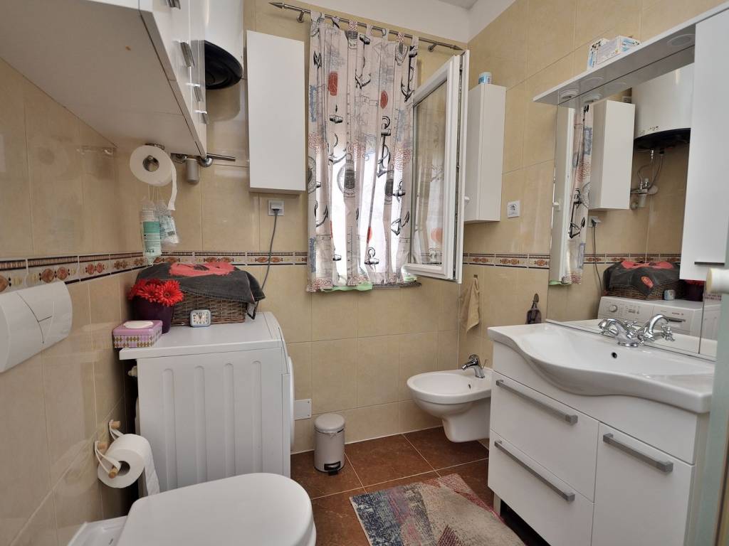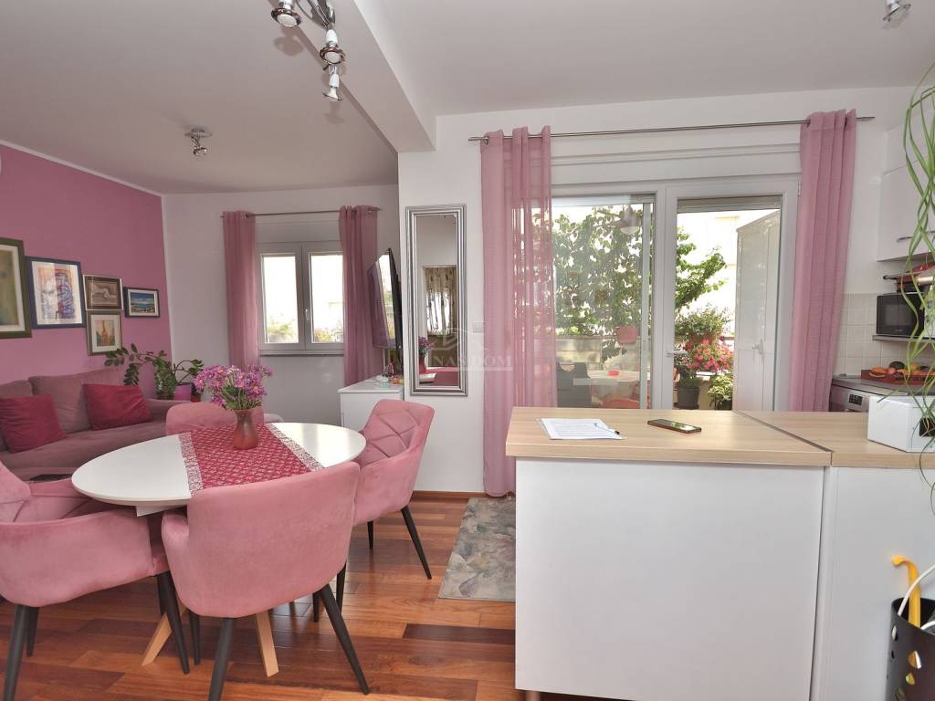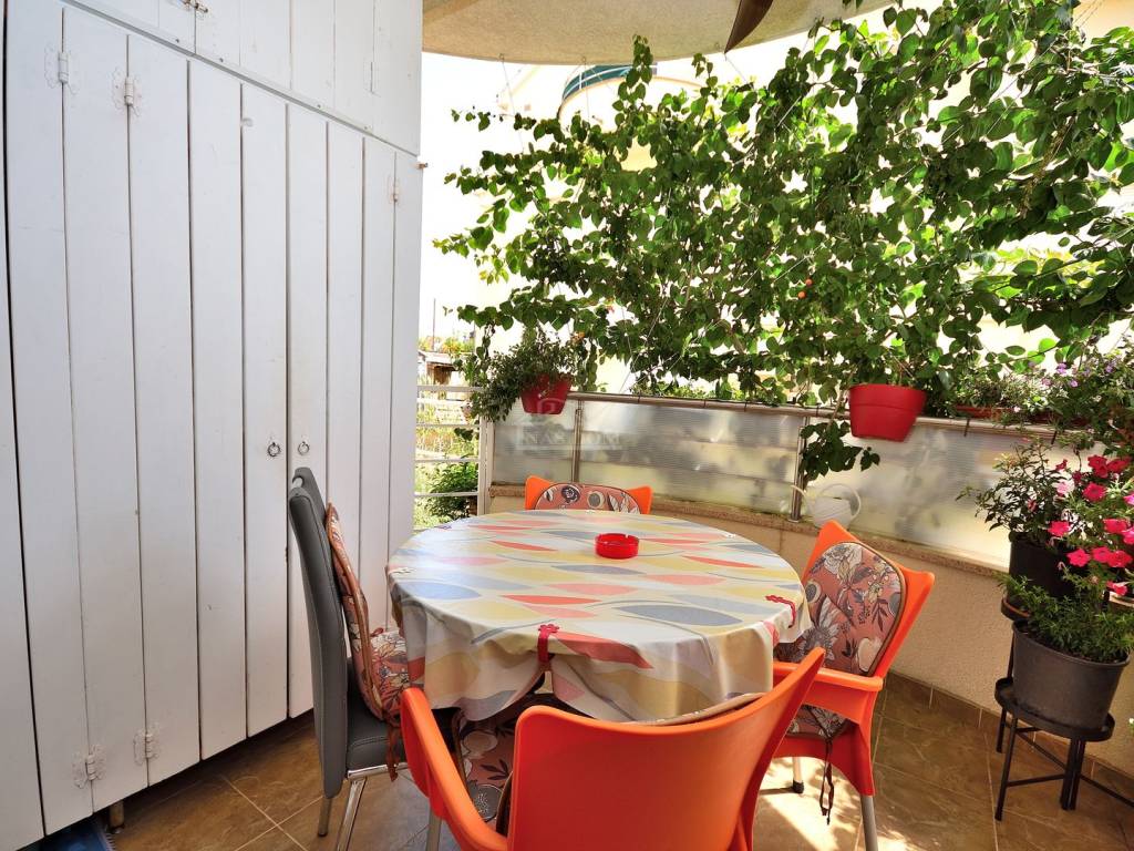Vodice - si vende un bel appartamento arredato in una posizione tranquilla. L'appartamento, con una superficie netta abitabile totale di 54,83 m2, si trova al piano rialzato di un piccolo edificio residenziale con un totale di 6 unità abitative ed è composto da ingresso, due camere da letto, bagno, cucina con sala da pranzo, soggiorno e terrazza. Nella parte del cortile curato dell'edificio, coltivato con piante mediterranee, si trova un barbecue e una casetta da giardino/sripostiglio smontabile utilizzata esclusivamente dai proprietari dell'appartamento. All'appartamento appartiene un posto auto. L'edificio si trova in una posizione tranquilla vicino alla natura, a circa 1800 m dal centro del paese e a 2000 m dalla spiaggia.