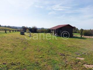 Na zemljištu se nalazi sjenica za dnevno obitavanje te dvije drvene kućice - alatnica i spremište. Nasadi lijeske i lavande predstavljaju dodatan plus za budućeg vlasnika.