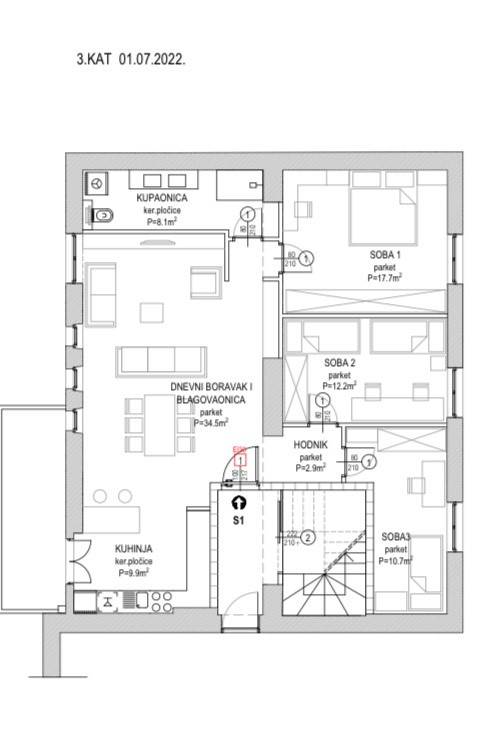 Split, Bačvice, moderan trosoban stan položen na trećem katu stambene zgrade.Sastoji se od hodnika, tri spavaće sobe, kupaonice, dnevnog boravka s blagovaonicom i kuhinje s izlazom na balkon.S balkona se pruža pogled na zapadnu obalu i rivu, a sami stan je izuzetno osunčan.Renoviran je 2024. godine (nova betonska ploča, sve instalacije, klima uređaj, podno grijanje, otvori itd.) te ne zahtijeva dodatna ulaganja.Nalazi se u blizini svih potrebnih sadržaja za svakodnevni život.Za dodatne informacije stojim Vam na raspolaganju.