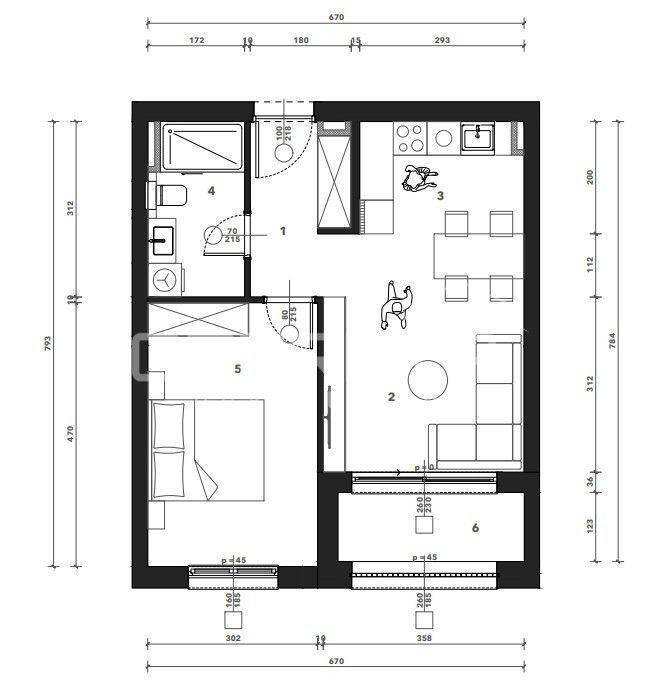Sastoji se od ulaznog hodnika, kuhinje s blagovaonicom i dnevnog boravka, spavaće sobe, kupaonice i loggie. Uz stan je potrebno kupiti garažno mjesto i spremište.