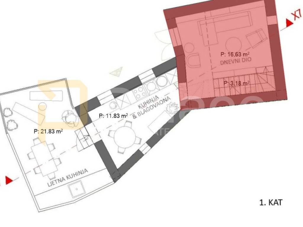 For the price of €74,000, it is possible to obtain complete documentation up to the construction permit for the project, which involves the reconstruction or replacement of the existing building with a new one, providing 85 m2 of internal net space + 29m2 of net flat roof terrace as per the construction permit.