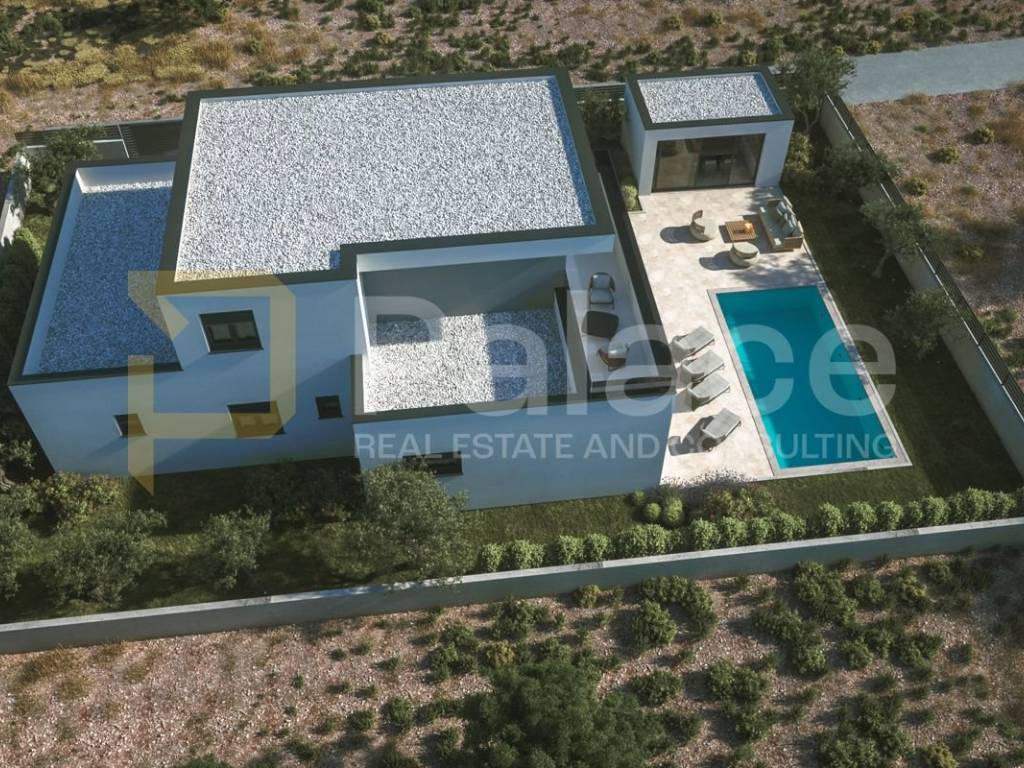 Na parceli je planirana moderna dvoetažna stambena zgrada stambene namjene, koja s pomoćnom zgradom čini skladnu arhitektonsku i funkcionalnu cjelinu. Buduća vila koncipirana je kao jedna stambena jedinica raspoređena na prizemlje i kat, s jasnom orijentacijom prema jugu, čime se maksimalno koristi prirodna svjetlost i otvoren pogled na okoliš.