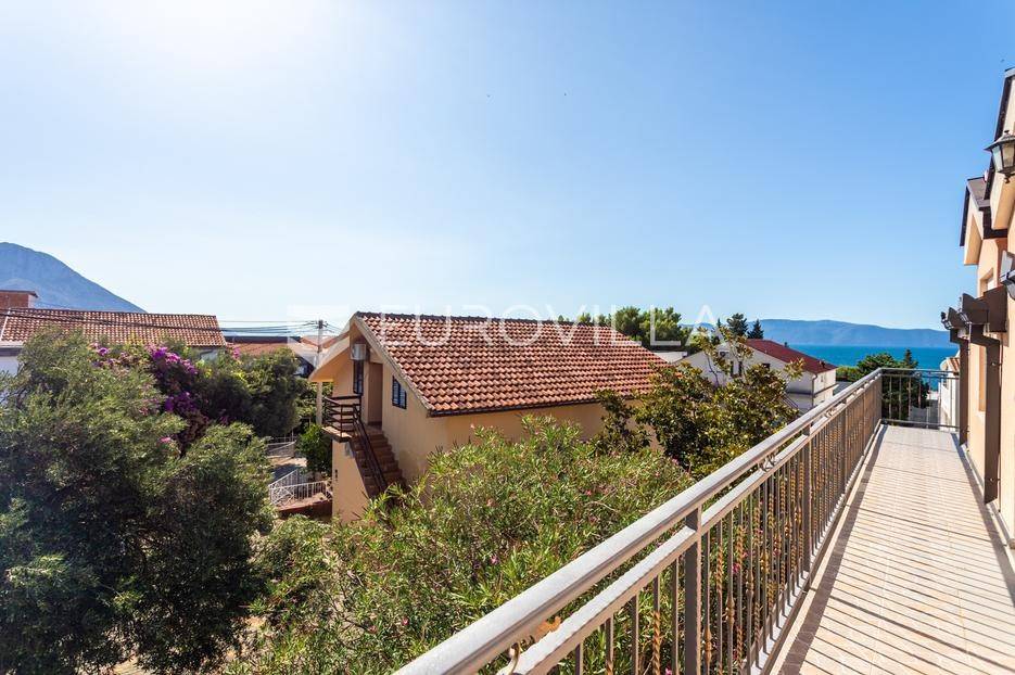 Gradac, Podaca, samostojeća kuća na parceli od 272 m2 razvedena u tri etaže.U prizemlju se nalazi kuhinja s blagovaonicom, dvije spavaće sobe te kupatilo.Prvi kat je podijeljen na dva odvojena apartmana, jedan studio koji se sastoji od dnevnog boravka, sobe s kuhinjom i kupaonicom, te jednosobnog apartmana u kojem se nalazi dnevni boravak, kuhinja, spavaća soba i kupaonica.Drugi kat zauzima prostrani apartman koji se sastoji od kuhinje s blagovaonicom, dnevnog boravka, dvije spavaće sobe i dvije kupaonice.Svaki kat ima svoj balkon i prekrasnu okućnicu s kamionom koju krasi mediteransko zelenilo te je idealna za obiteljski život ili turistički najam.Izvrsna lokacija, svega pet minuta hoda do plaže, ali uz dovoljno privatnosti za miran boravak.Za dodatna pitanja, stojim Vam na raspolaganju.