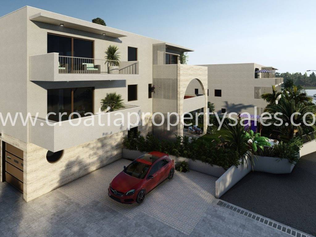 A new construction located on Čiovo island, situated just 50 m from the sea.There will be 11 apartments in total, ranging from one bedroom to three-bedroom apartments. Start of construction is planned for fall 2025. GROUND FLOOR:S1 – 1 bedroom, 1 bathroom, kitchen and living room – 42 m2 + covered terrace 14.5 m2 + garden 120 m2 – €215,460S4 – 2 bedrooms, 1 bathroom, kitchen and living room – 50 m2 + 22 m2 terrace + garden 112 m2 – €227,535FIRST FLOOR:S5 – 2 bedrooms, 1 bathroom, kitchen and living room – 53 m2 + balcony 13 m2 – €207,795S6 – 1 bedroom, 1 bathroom, kitchen and living room, storage room – 46 m2 + balcony 13 m2 – €184,695S7 – 2 bedrooms, 1 bathroom, kitchen and living room – 45 m2 + balcony 15 m2 – €183,610SECOND FLOOR:S9 – 3 bedrooms, 2 bathrooms, kitchen and living room, storage room – 96 m2 + 2 balconies of 14 m2, loggia 8 m2 – €398,020S10 - 2 bedrooms, 1 bathroom, kitchen and living room – 45 m2 + balcony 16.5 m2 – €185,710S11 - 2 bedrooms, 1 bathroom, kitchen and living room – 50 m2 + balcony 30 m2 – €227,115Each apartment will be sold with a garage space. On the side of the building is going to be a swimming pool, for all tenants to use. Planned completion is in 2027.