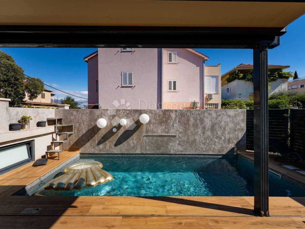 Attractive apartment with swimming pool for sale on Marjan In one of the most desirable locations in Split, at the foot of Marjan, a modernly furnished apartment of **79.20 m²** with a spacious garden of **160 m²** and a private swimming pool is for sale. The apartment consists of: two comfortable bedrooms, a spacious kitchen connected to the dining room and living room in an open-space concept, two bathrooms, a storage room, an exit to a private garden. The garden is a real oasis for relaxation - it is equipped with a barbecue, a table and chairs for socializing, and there is also a swimming pool measuring **6 x 3 m²** that ensures luxury and privacy throughout the summer. Additional amenities: a heat pump and underfloor heating for maximum energy efficiency and comfort, two private parking spaces, an auxiliary building (currently a garage) with the possibility of building another floor, which further increases the value and potential of the property. The apartment is located in a quiet environment, yet close to all necessary amenities. It is an ideal opportunity for family life, but also as an investment for tourist rental due to the attractive location and amenities. Apartment area: 79.20 m² Garden area: 160 m² Swimming pool: 6 x 3 m² 2 parking spaces + garage with potential for expansion. For more information, please contact me with confidence! DIJANA JERONČIĆ Mobile: +385 993268610 ID CODE: ST4140 Dijana Jerončić Agent s licencom Mob: 099/326-8610 Tel: +385 21 293 201 E-mail: dijana.jeroncic@dogma-nekretnine.com www.dogma-dalmacija.com