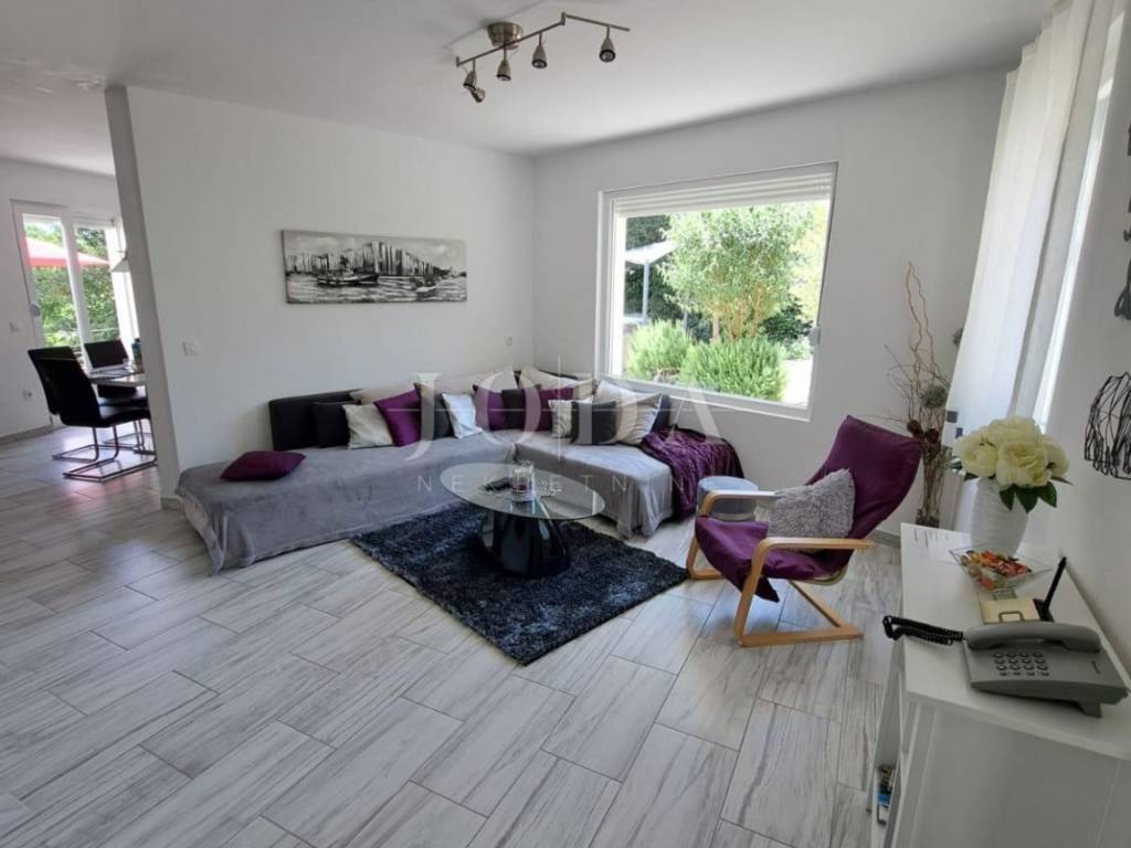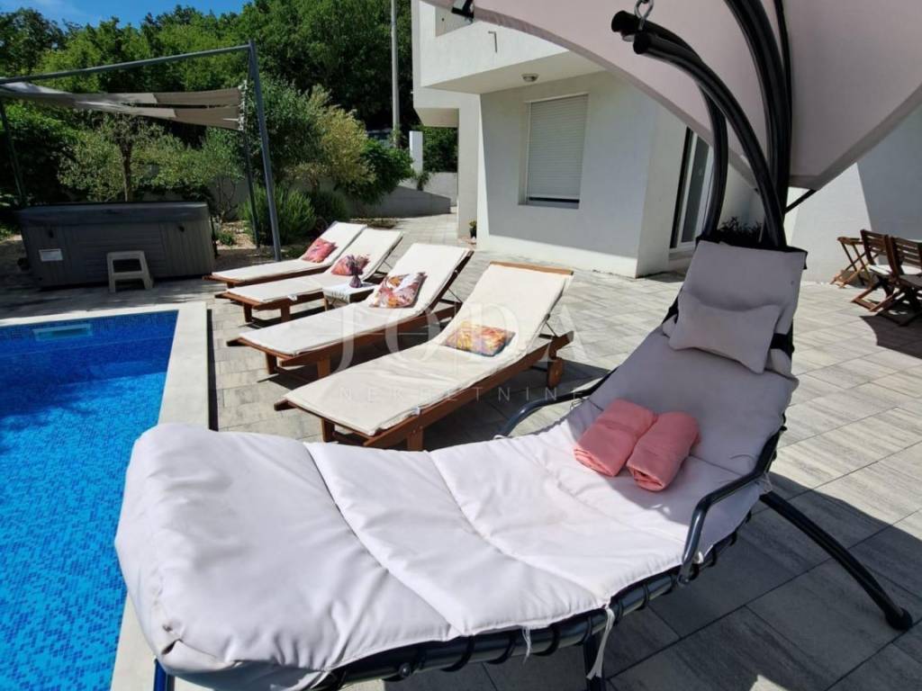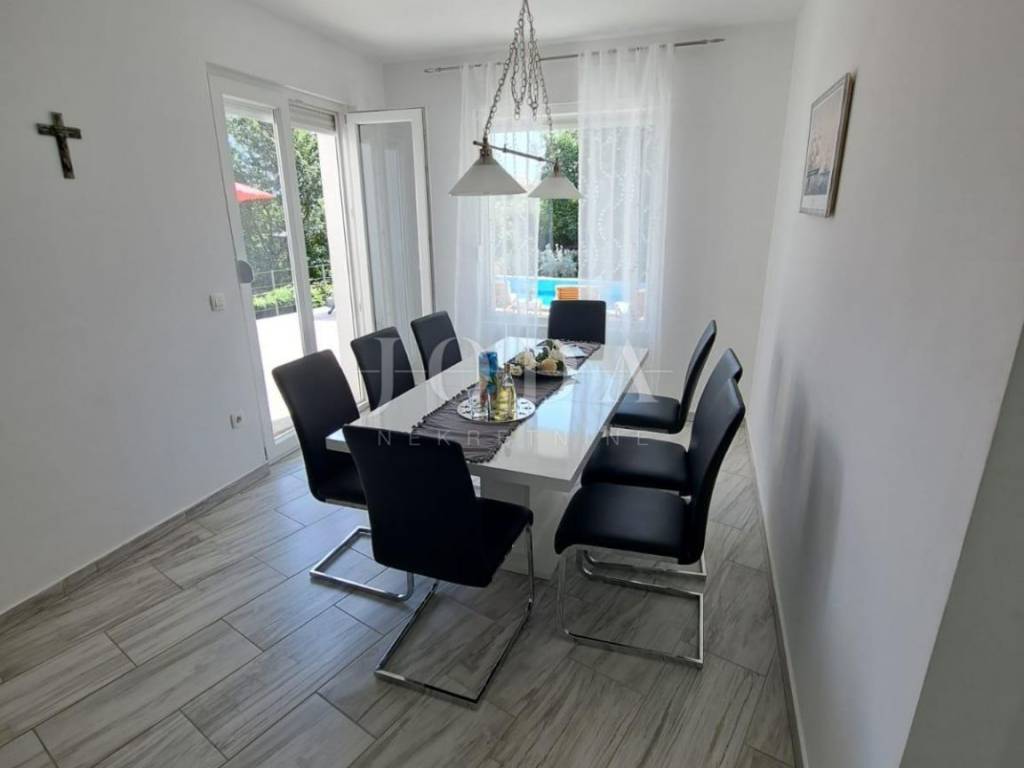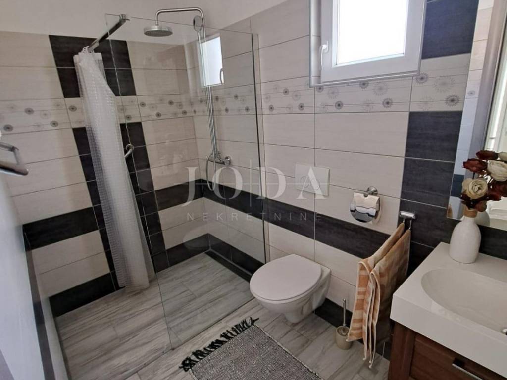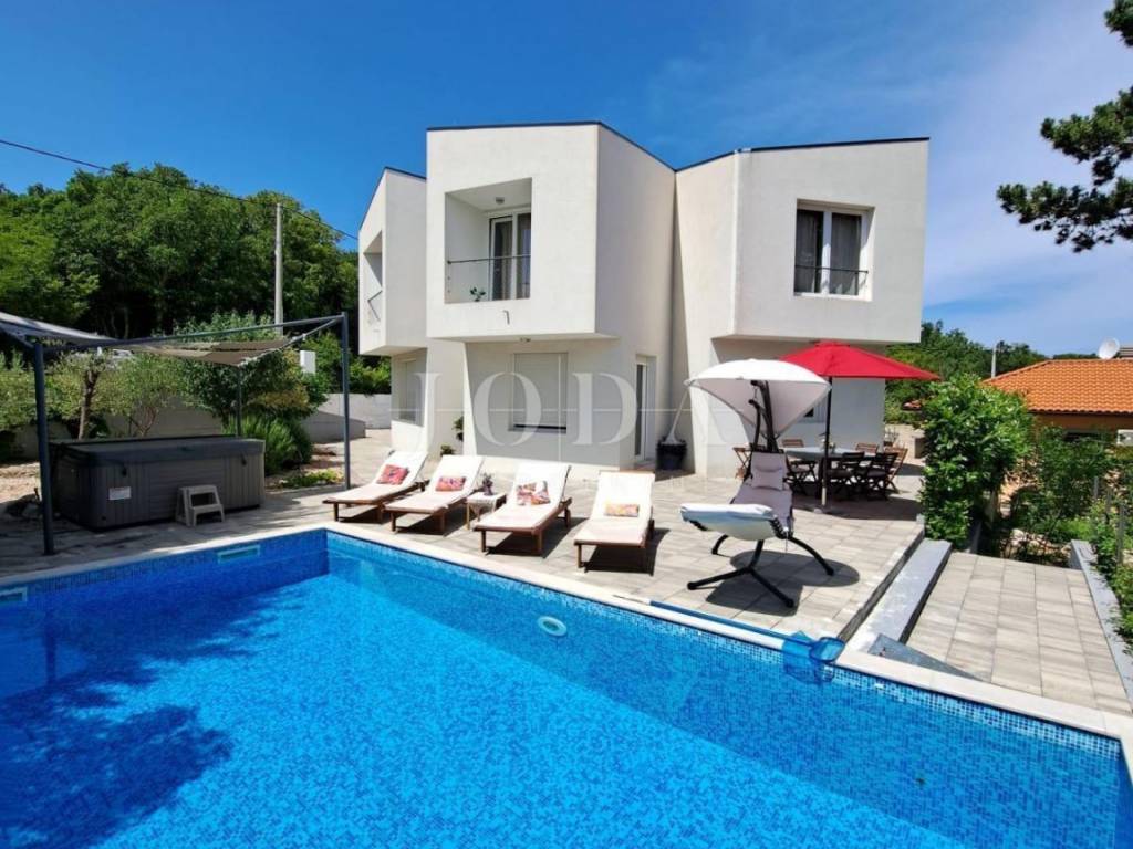 On the island of Krk near Dobrinj, a beautiful modern house with a beautifully landscaped garden and swimming pool is for sale. The house has 133m2 of living space located on the ground floor and first floor. The house consists of a spacious living room, kitchen and dining room, two bathrooms, and three bedrooms. The house is furnished, equipped and as such is for sale. The biggest feature of the house is a large garden with a swimming pool, sun deck, barbecue, and jacuzzi and one part is arranged as a playground for children. Beautiful quiet location, ideal for living or tourist purposes. ID CODE: EI-4038 Josip Šikić, mag.oec Agent s licencom Mob: +385 91 890 4694 Tel: +385 51 403 771 E-mail: info@joda-nekretnine.hr www.joda-nekretnine.hr