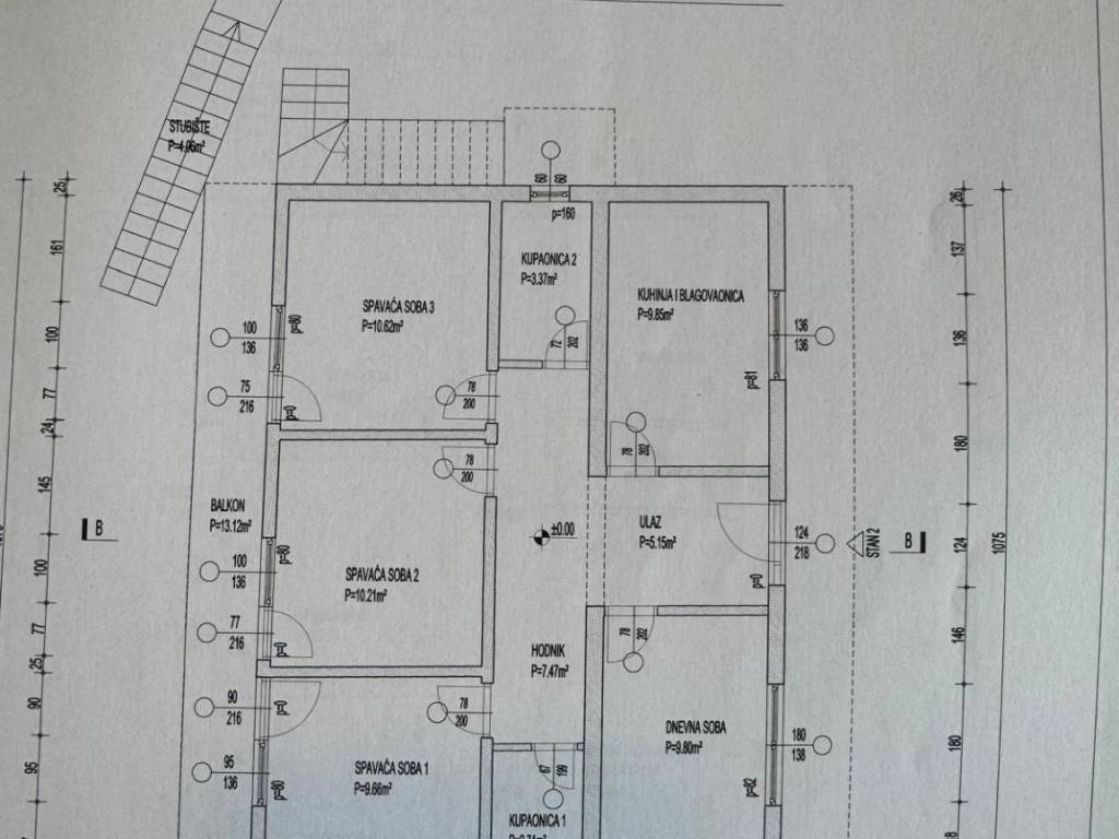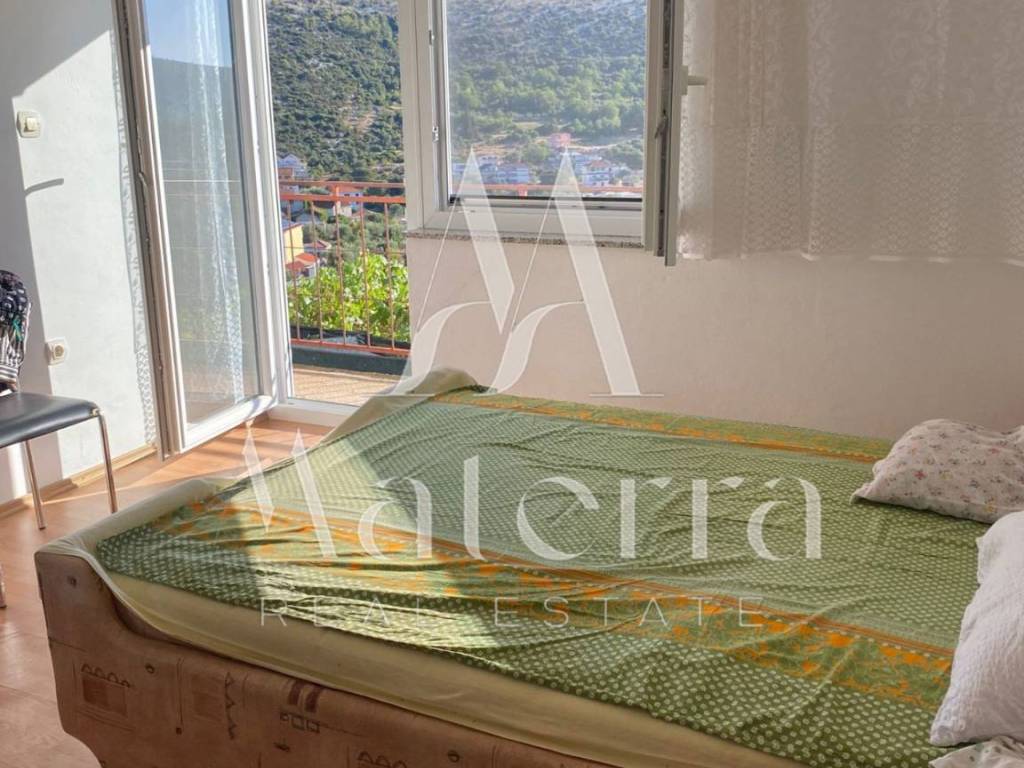 For sale: a house in Marina, located only 400 meters from the center and the sea. It consists of a basement, ground floor, and first floor. The areas are: basement 73.76 m², ground floor 81.99 m², and first floor 91.23 m² – in total 246.98 m² of living space. The property offers three parking spaces and a backyard with a nice view. The southern orientation provides plenty of natural light throughout the day. Built in 1985, with the first floor added in 1995. It features a concrete roof with insulation, a septic tank, and three-phase electricity.