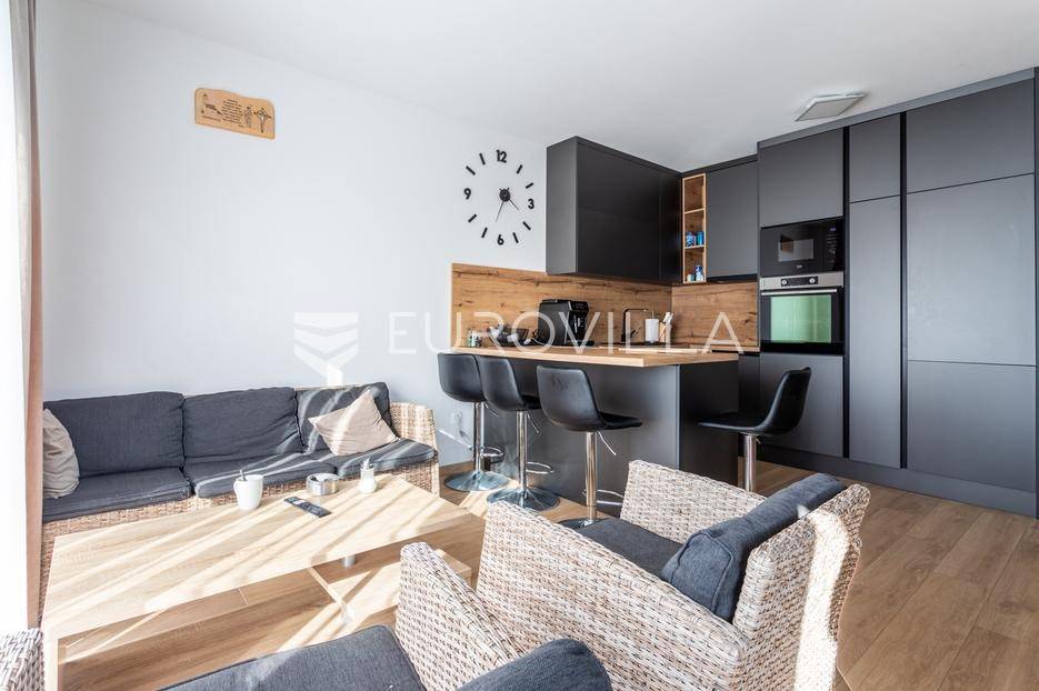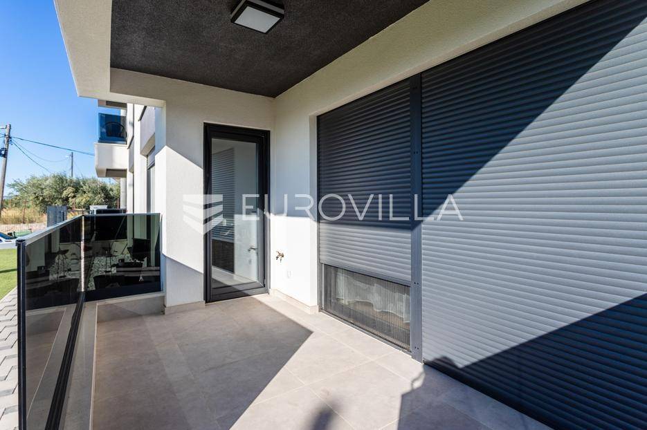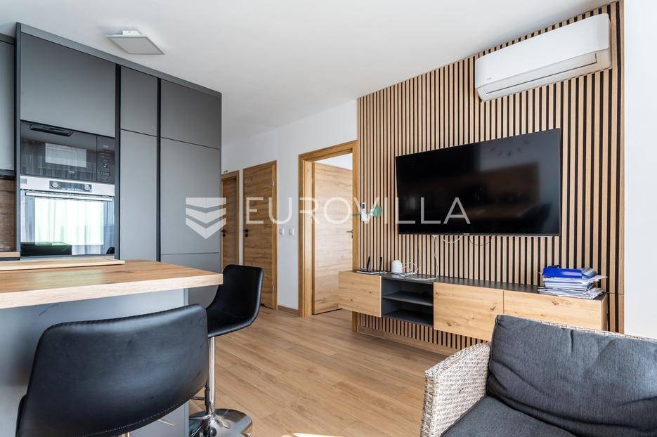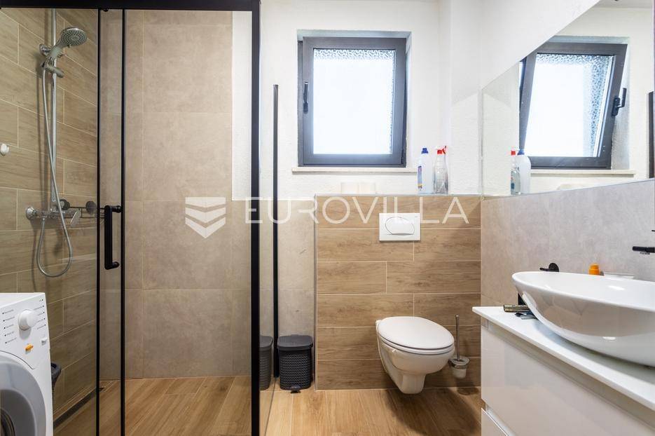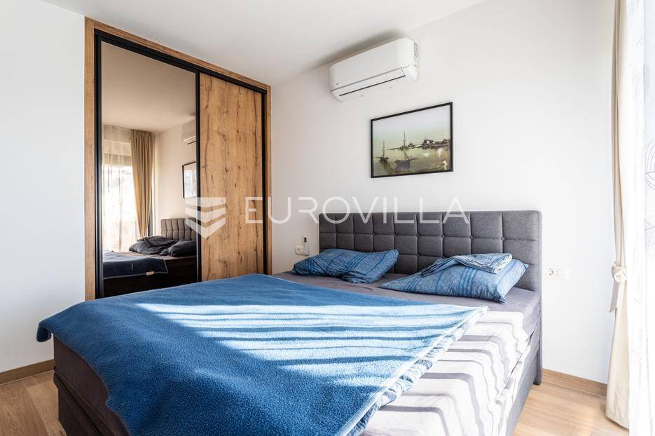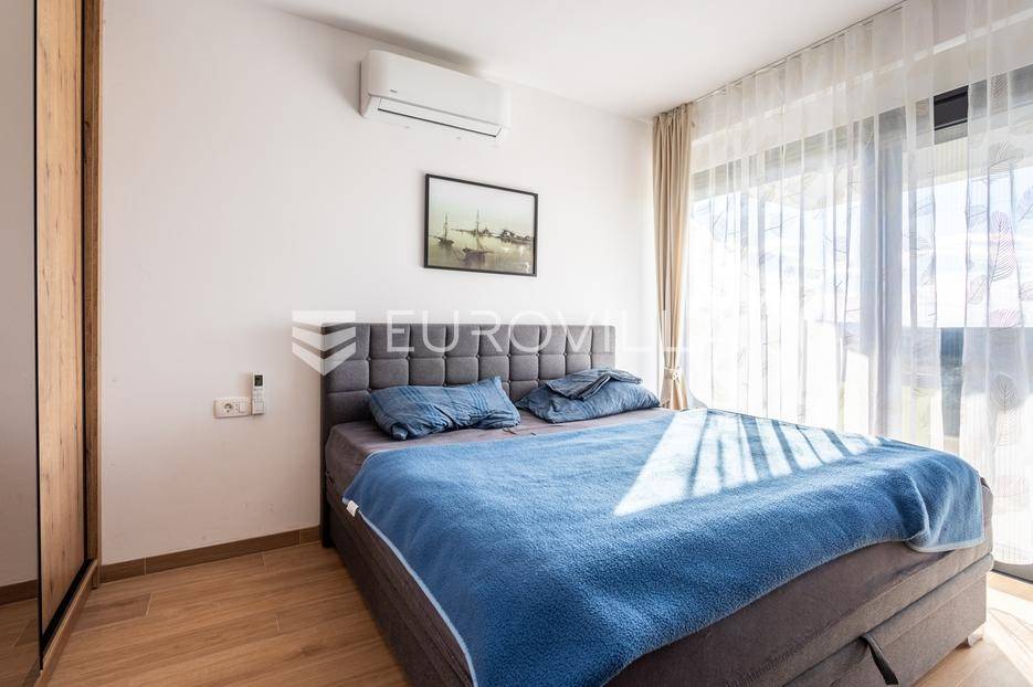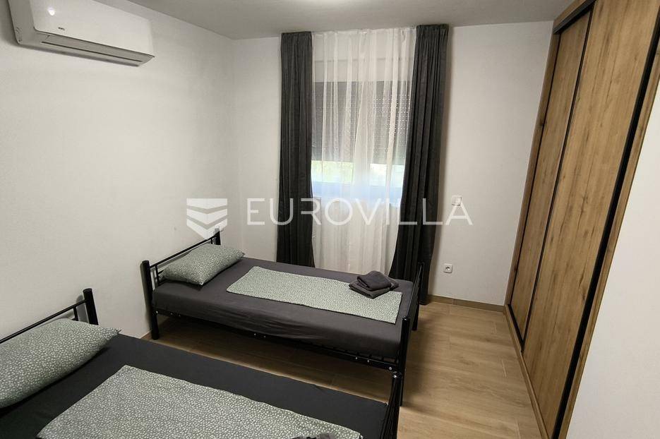 Klima uređaji su postavljeni u spavaćim sobama i dnevnom boravku.Na natkrivenu terasu se izlazi iz dnevnog boravka i sobe te ista vodi u vrt koji je prekriven umjetnom travom i pripada stanu.Stan je iznimno osvijetljen i ima jedno pripadajuće vanjsko parkirno mjesto.Lokacija je odlična, jako tiho okruženje.Režije nisu uključene u cijenu.Za sve dodatne informacije, stojimo Vam na raspolaganju.