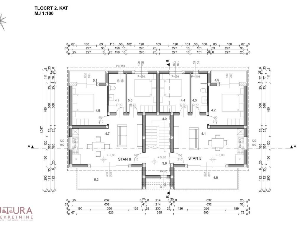 Nuova costruzione di alta qualità, utilizzati solo i materiali migliori - il sistema costruttivo principale dell'edificio è in cemento armato, muri in mattoni Porotherm profi, ceramica italiana di prima qualità, sanitari Hansgrohe di prima classe, canaline doccia TECE, pareti doccia in vetro con porte su misura, infissi in PVC ISO con tapparelle elettriche e zanzariere con reti per la protezione da zanzare e insetti. Infissi Aluplast, alzanti elettrici per tapparelle, zanzariere anti-zanzare, vetri 4S (4S = Four seasons vetri, quattro stagioni - regolano il passaggio del calore a seconda della stagione o della temperatura esterna, in estate riducono il riscaldamento riflettendo maggiormente i raggi solari, in inverno permettono il riscaldamento tramite i raggi solari, garantiscono un’isolamento potenziato e prevengono la condensazione, assicurano costi inferiori per riscaldamento e climatizzazione), ampie superfici vetrate, parapetti delle terrazze combinati in parte pieni e in parte in vetro, videocitofono, TV satellitare, tutti gli ambienti hanno adeguata coibentazione termica e impermeabilizzazione, isolamento acustico, isolamento acustico della struttura tra i piani, scala rivestita in granito, davanzali in granito, riscaldamento a pavimento nelle zone giorno e nei bagni – modulo Wi-Fi integrato – controllo del riscaldamento a pavimento tramite app mobile, scaldabagni di design Ariston da 80 l – modulo Wi-Fi integrato – controllo dello scaldabagno tramite app mobile, climatizzatori per riscaldamento e raffrescamento in ogni camera da letto e soggiorno – modulo Wi-Fi integrato – controllo dei climatizzatori tramite app mobile, porte d’ingresso Dierre antieffrazione e tagliafuoco per gli appartamenti (possibilità di installare modulo Wi-Fi per il controllo delle porte), porte interne con cerniere nascosti e serrature magnetiche, ecc...