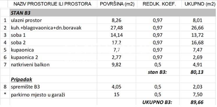 B3 – 1. kat – 2x spavaća soba – NKP 89,66 m2 – 320.000 €