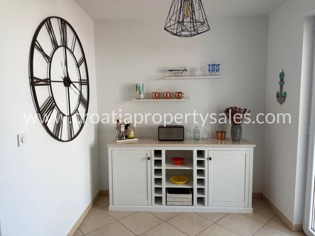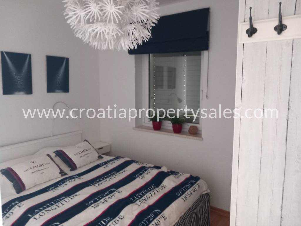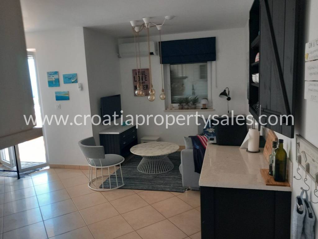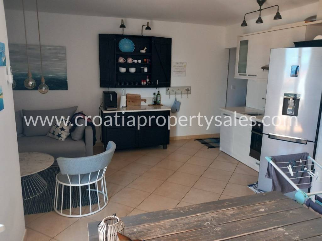 Apartment on the second floor of a residential building, area 46 m2.It consists of one bedroom, bathroom, kitchen, living room, dining room and balcony.There is a storage room in the basement of the building. The balcony has a sea view.The apartment is air-conditioned, it is sold furnished.It is possible to enter the apartment only after August 2026.