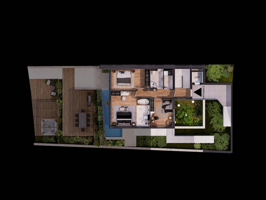 A luxurious duplex apartment with a garden and a swimming pool in the first row to the sea in an excellent location in Okrug Donji is in offer. Located right next to the sea, with a beautiful view and direct access to the sea, oriented to the north, south and west, it fits perfectly into the Mediterranean environment. The apartment is located in a residential building with a total of four apartments, and access to it is provided from the north side. The apartment is not only part of a luxury apartment complex, but a comprehensively designed space for living, rest and relaxation. This duplex apartment, equipped with an elevator, is located on the ground floor and on the first floor of the building with an open panoramic view of the sea. It has 138,79 m² and is divided so that the living area is located on the first floor, and the bedrooms with bathrooms are on the second. On the ground floor there is a kitchen with a dining room and a living room that is connected to the outdoor space as if it were a single unit, as well as a toilet and an internal staircase that leads to the first floor where there is a hallway that leads to the laundry room, three bedrooms and two bathrooms. The biggest advantage of the apartment is its outdoor space of 218,72 m², which creates the impression of privacy and provides all the amenities of a private house. In front of the apartment there are cascading terraces with gardens and a private swimming pool, while only a few steps separate the owner from a landscaped sunbathing area on the coast. Of the additional amenities located in the building behind, the most notable is a shared roof terrace with lounge seats and an open view of the sea, a gym and saunas in the basement and another swimming pool that is for the common use of all residents. Behind the building there is an outdoor covered parking space, and there is also the possibility of purchasing an additional parking space in the garage. The construction and furnishing uses top quality materials (high class tiles and sanitary ware, air conditioner in every room, security doors etc.), and there is also the option of completing the apartment’s decoration in collaboration with experienced interior designers. The prime location is characterized by the distance to the airport of only 13 km, the proximity of all amenities on the island and the cities of Trogir and Split. The immediate proximity of the sea, crystal clear sea and the surrounding nature make this location an ideal place for relaxation throughout the year. Given the numerous terraces, gardens and amenities, the apartment is an excellent choice for all those looking for a property in a prime location, primarily by the sea.