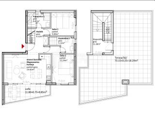 two bedrooms, two bathrooms, living room, kitchen and dining room with access to an outdoor loggia of 11.8 m2 with a view of the sea.