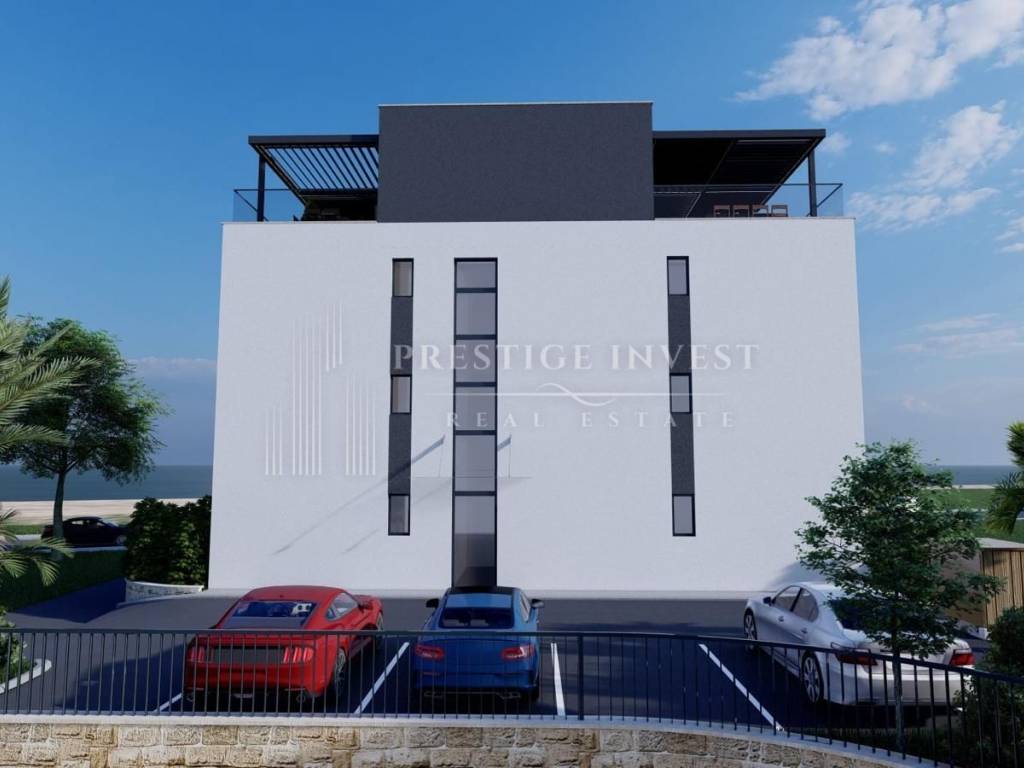 Modern two-room apartment for sale in Sukošan, first row by the sea. The apartment is located on the second floor and has a total living area of ​​104.04m2 and consists of: