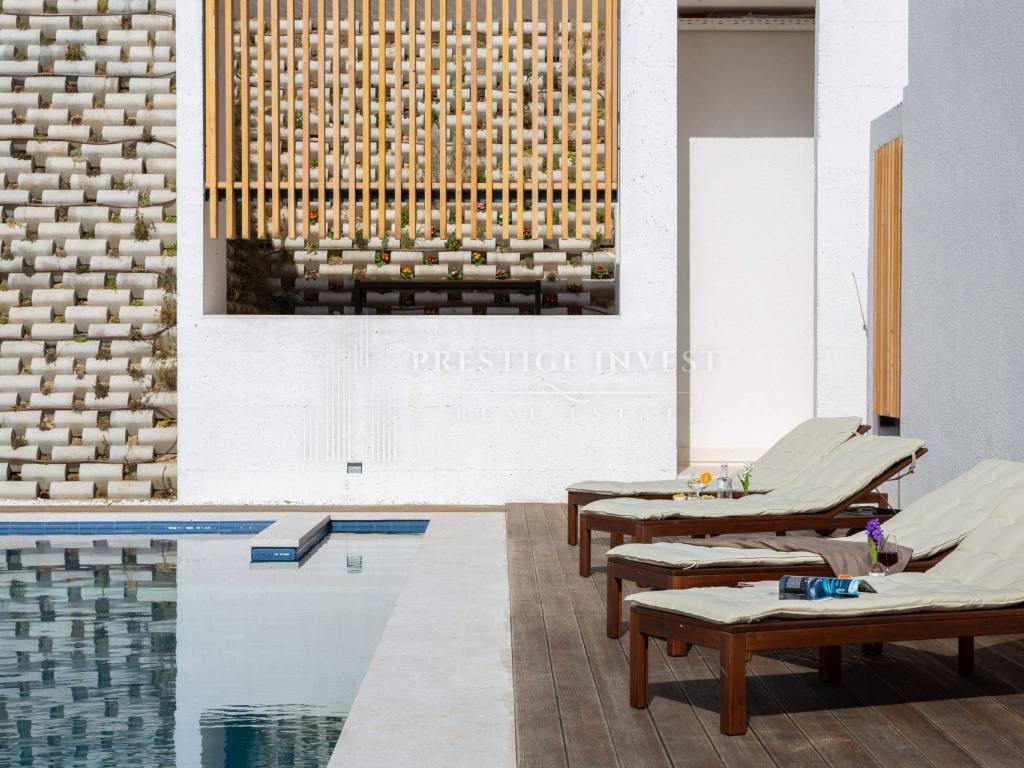 This spectacular villa is spread over three floors, with additional wellness, a gym and a private yard. The villa is located only 200 meters from the sea and 300 meters from the beach, with modern architecture and top facilities.