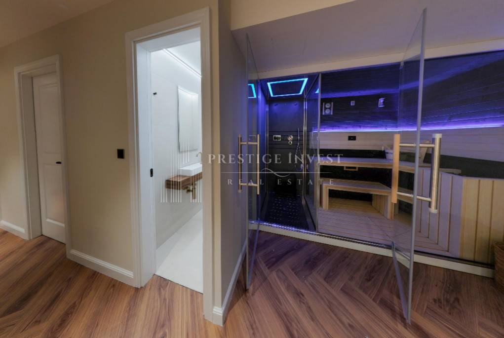 In the basement there is a recreational facility, a gym, a sauna, a shower and a toilet, a laundry room, an additional storage room and a home theater.