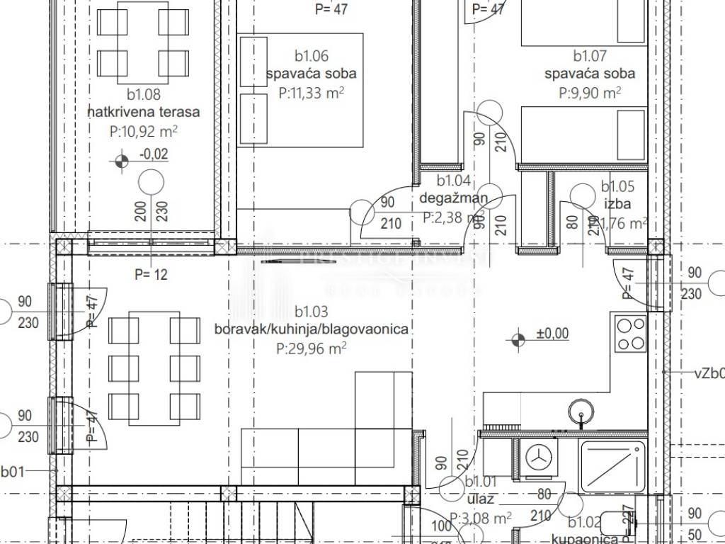 Living room/kitchen/dining room: 29.96 m²