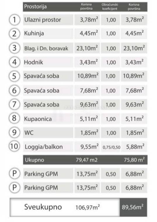 For sale is an attractive three-bedroom apartment located on the 4th floor of a quality new building, with a total area of ​​89.56 m², with two garage parking spaces and a spacious loggia.