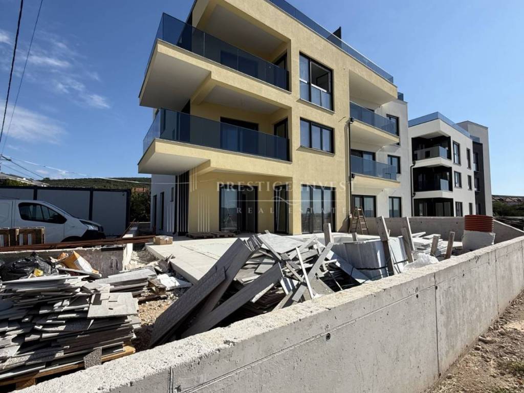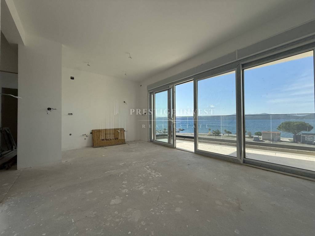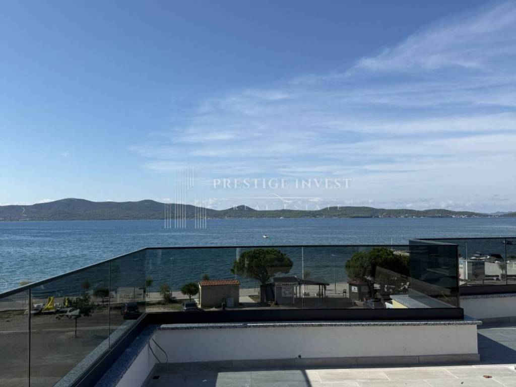 Modern two-room apartment for sale in Sukošan, first row by the sea. The apartment is located on the second floor and has a total living area of ​​104.04m2 and consists of: