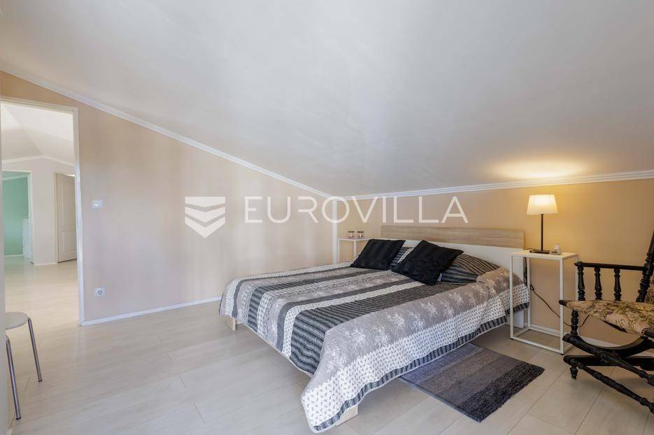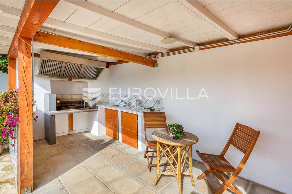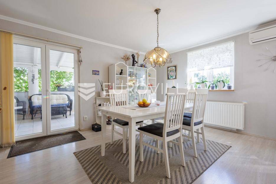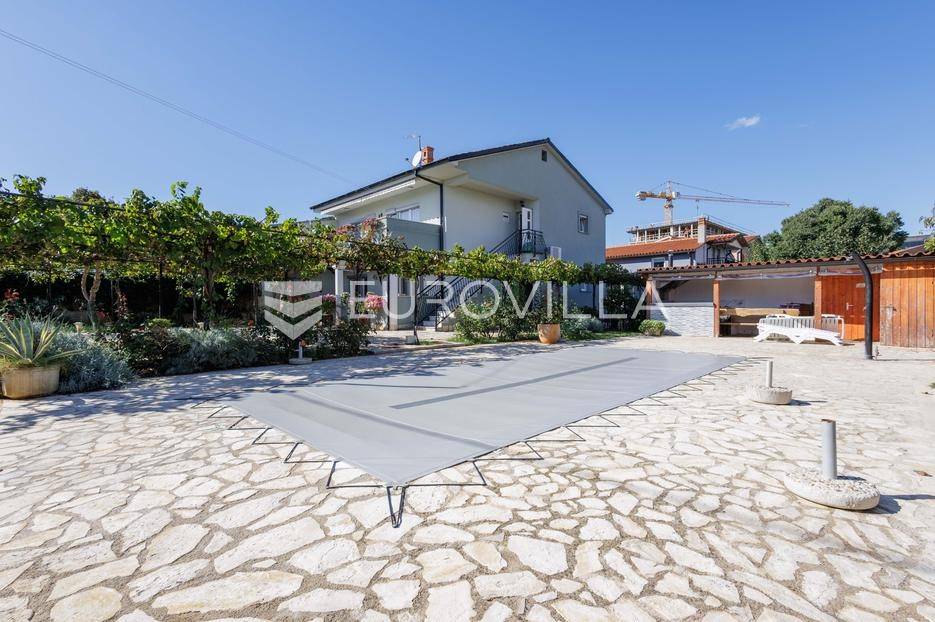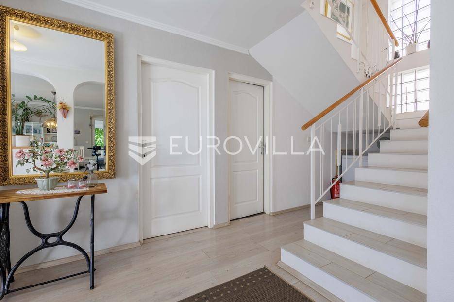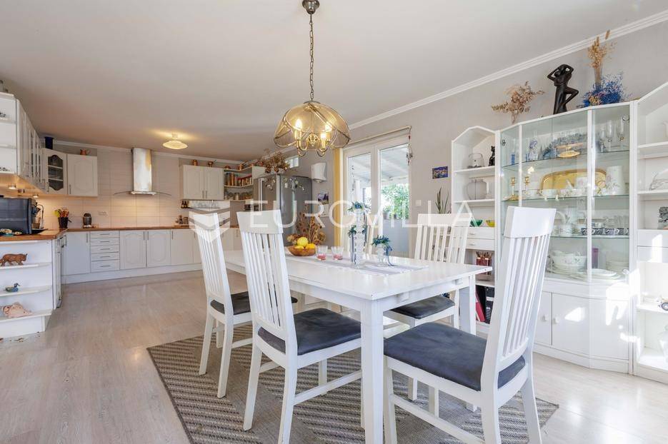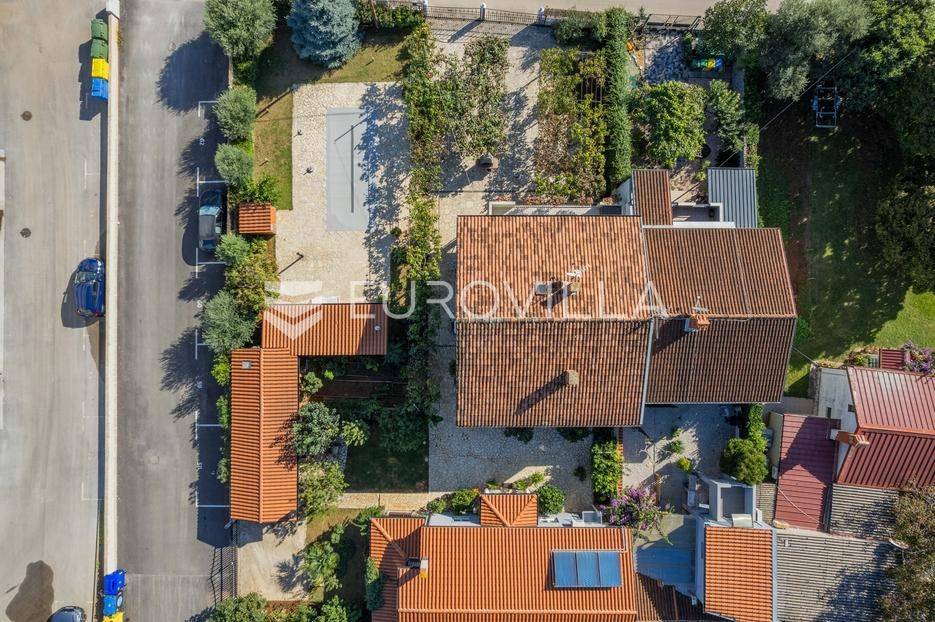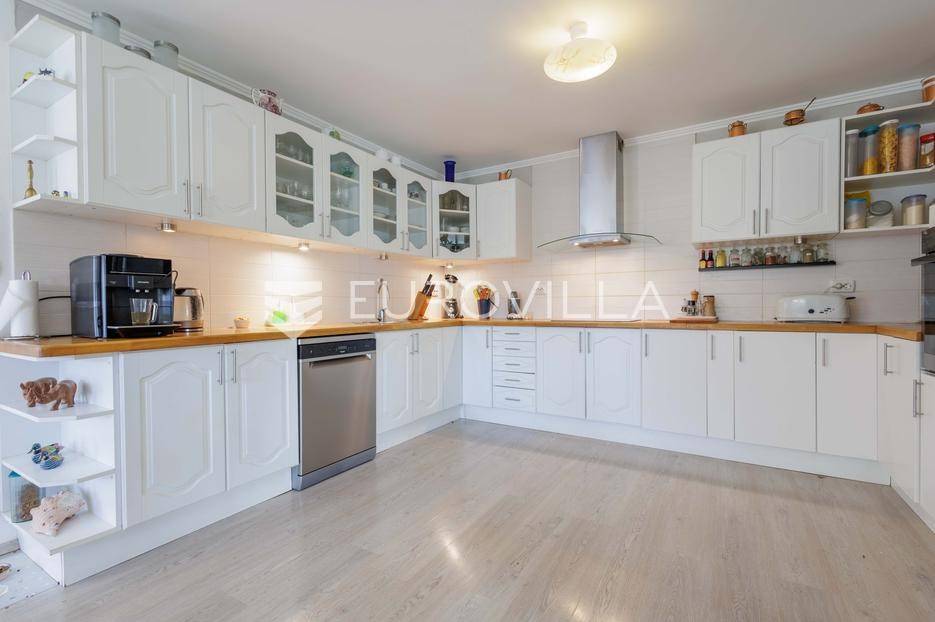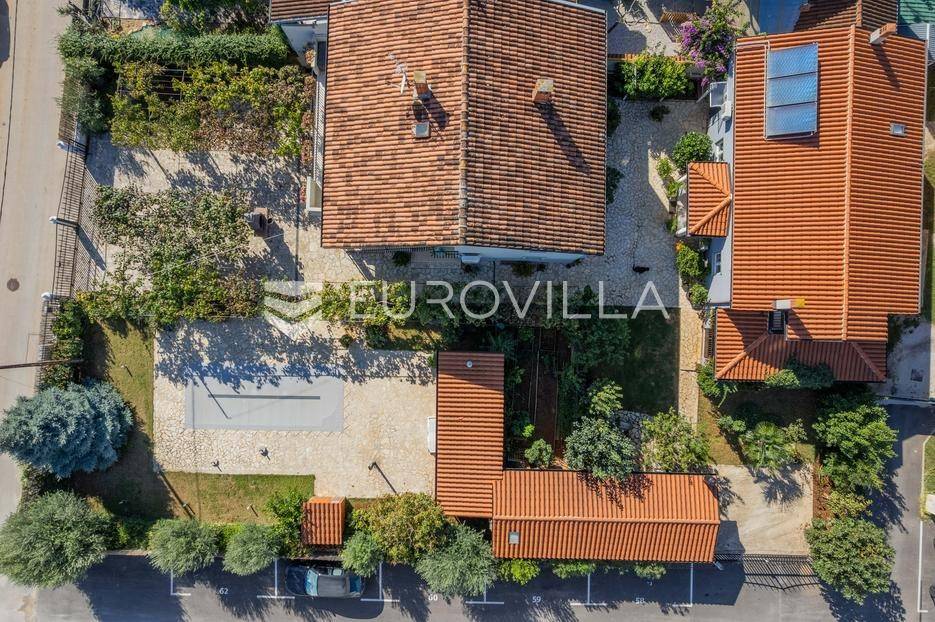 U mirnom i ekskluzivnom dijelu Kaštanjera smjestila se rijetka nekretnina koja spaja udobnost, privatnost i prostranost. Na zemljištu od 1000 m2 smještene su dvije kuće okružene zelenilom i vlastitim bazenom. Prva kuća sastoji se od dva stana identičnog rasporeda, svaki od 96 m2, a sastoji se od ulaznog hodnika, kuhinje s blagovaonicom, dnevnog boravka, dvije spavaće sobe, ostave, kupaonice i terase od 30 m2. Stanovi imaju centralno grijanje na pelete i klima-uređaje, a nova fasada i prozori iz 2021. godine osiguravaju moderan i svjež izgled.Druga kuća prostire se na 180 m2, kroz prizemlje i kat te nudi funkcionalan i prostran dom. Prizemlje je srce kuće, s prostranom kuhinjom i blagovaonicom koje se otvaraju prema terasi od 30 m2, jednom spavaćom sobom i kupaonicom. Na katu se nalazi dnevni boravak, garderoba i tri spavaće sobe, od kojih dvije dijele terasu, te dodatna kupaonica. Uz kuću je i vešeraj od 20 m2, koji dodaje praktičnost svakodnevici.Okućnica je prostrana i pažljivo uređena, s bazenom i sunčalištem, vanjskom kuhinjom i blagovaonicom, vrtom i dovoljno prostora za parking. Sve je ograđeno živim zidom, što stvara osjećaj privatnog utočišta, potpuno skrivenog od pogleda, idealnog za obiteljski život ili uživanje u miru.Postoji mogućnost dogovora i kupnje samo prve kuće s dva stana.Za više informacija ili dogovor oko razgleda, slobodno nam se obratite.