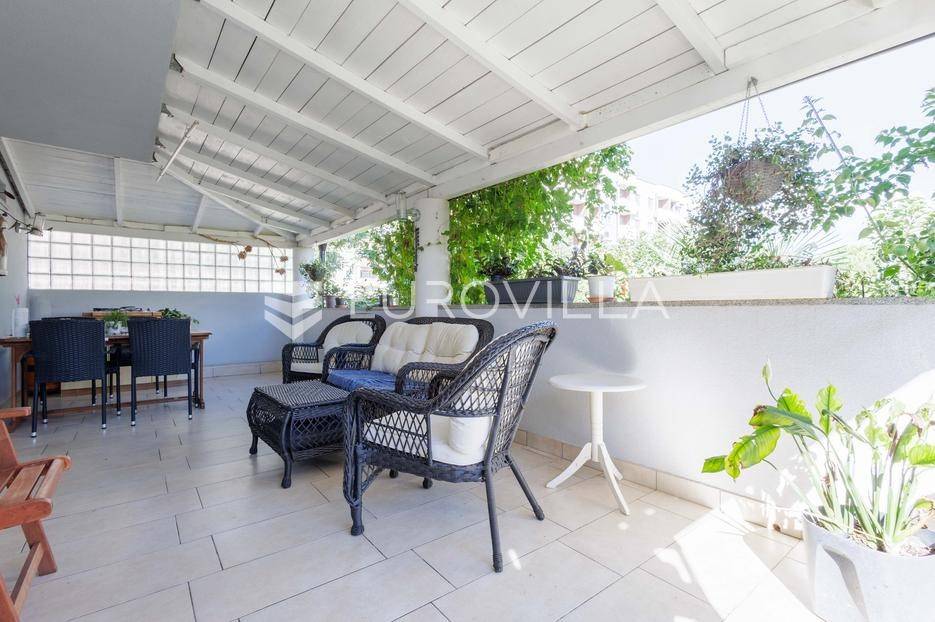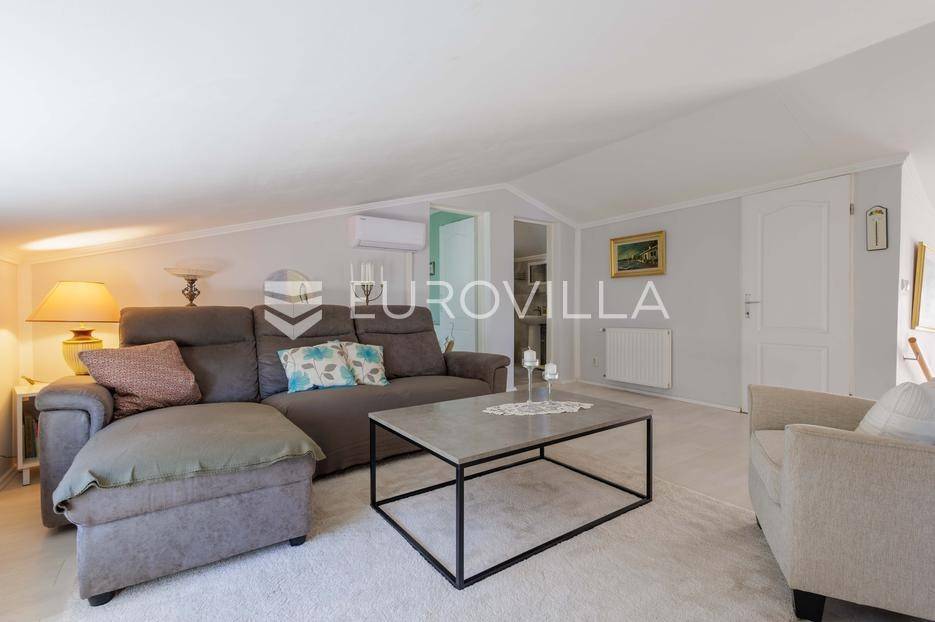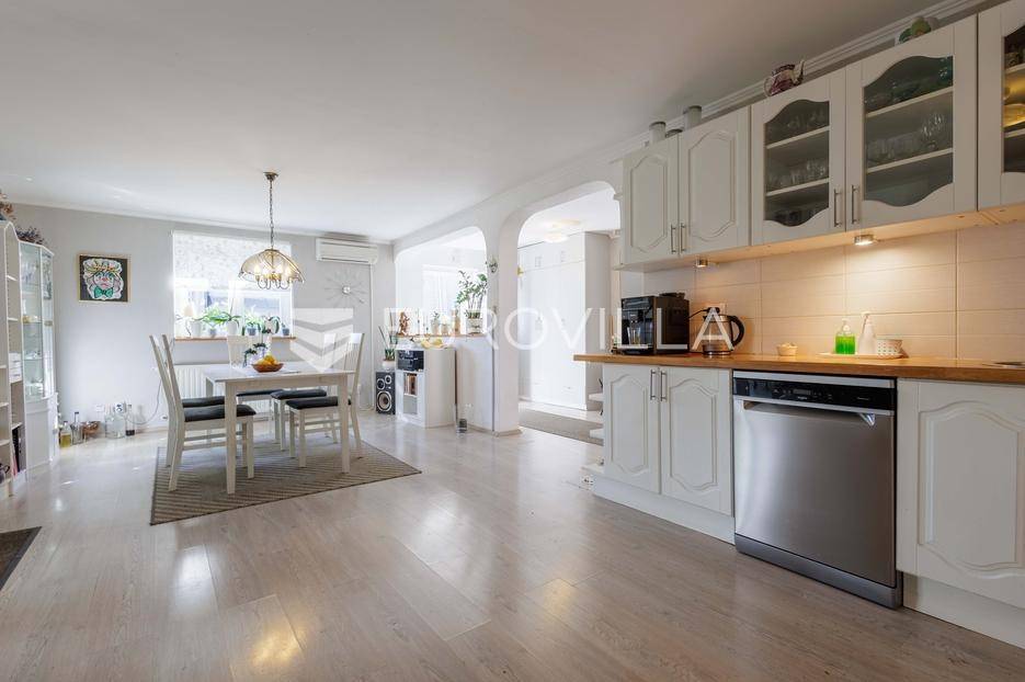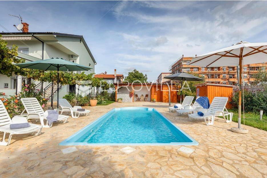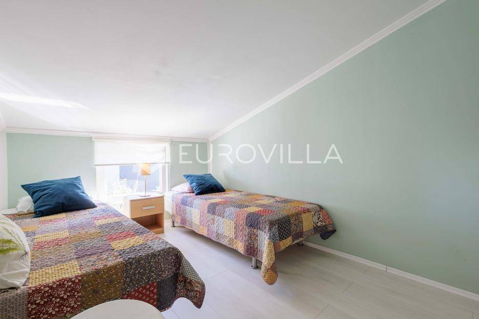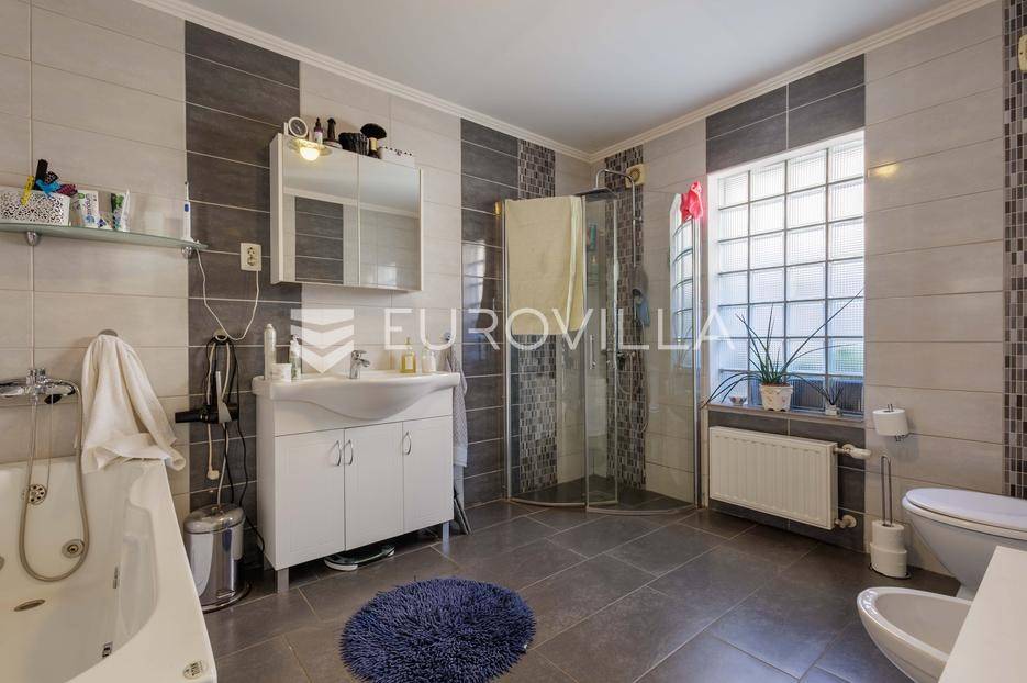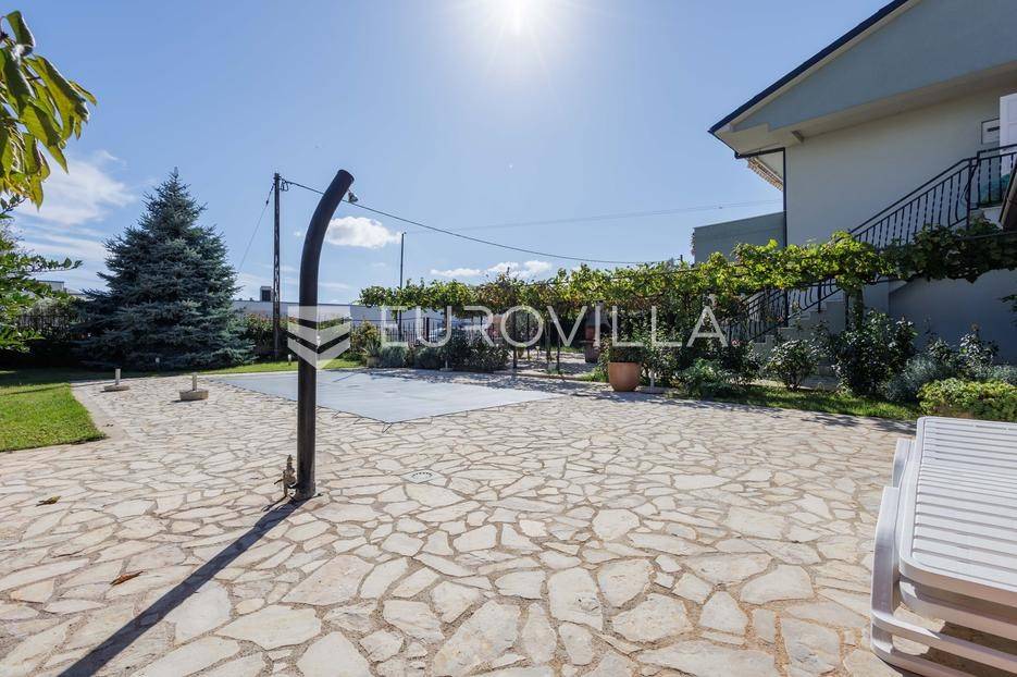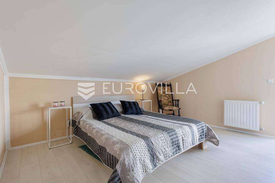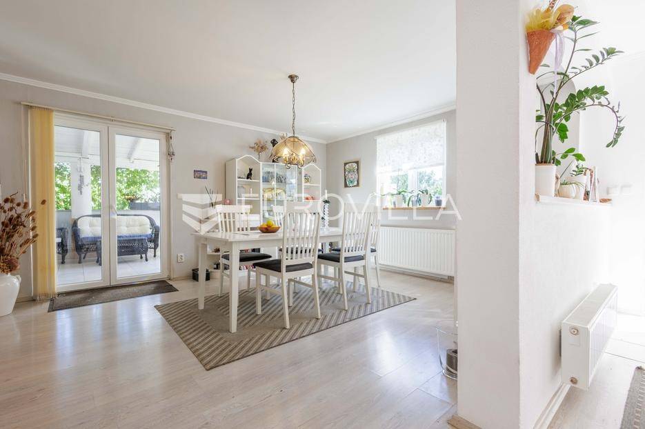 U mirnom i ekskluzivnom dijelu Kaštanjera smjestila se rijetka nekretnina koja spaja udobnost, privatnost i prostranost. Na zemljištu od 1000 m2 smještene su dvije kuće okružene zelenilom i vlastitim bazenom. Prva kuća sastoji se od dva stana identičnog rasporeda, svaki od 96 m2, a sastoji se od ulaznog hodnika, kuhinje s blagovaonicom, dnevnog boravka, dvije spavaće sobe, ostave, kupaonice i terase od 30 m2. Stanovi imaju centralno grijanje na pelete i klima-uređaje, a nova fasada i prozori iz 2021. godine osiguravaju moderan i svjež izgled.Druga kuća prostire se na 180 m2, kroz prizemlje i kat te nudi funkcionalan i prostran dom. Prizemlje je srce kuće, s prostranom kuhinjom i blagovaonicom koje se otvaraju prema terasi od 30 m2, jednom spavaćom sobom i kupaonicom. Na katu se nalazi dnevni boravak, garderoba i tri spavaće sobe, od kojih dvije dijele terasu, te dodatna kupaonica. Uz kuću je i vešeraj od 20 m2, koji dodaje praktičnost svakodnevici.Okućnica je prostrana i pažljivo uređena, s bazenom i sunčalištem, vanjskom kuhinjom i blagovaonicom, vrtom i dovoljno prostora za parking. Sve je ograđeno živim zidom, što stvara osjećaj privatnog utočišta, potpuno skrivenog od pogleda, idealnog za obiteljski život ili uživanje u miru.Postoji mogućnost dogovora i kupnje samo prve kuće s dva stana.Za više informacija ili dogovor oko razgleda, slobodno nam se obratite.