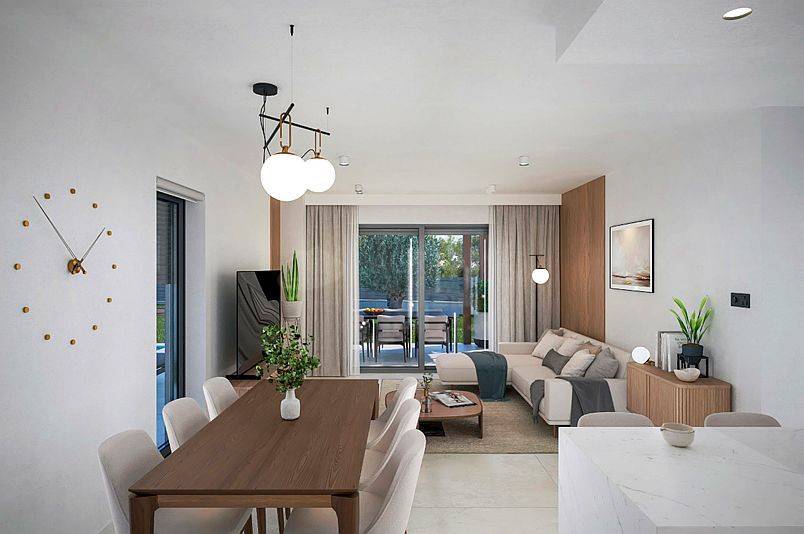 The ground floor is designed to combine functionality and comfort: a spacious living room connected to a modern kitchen and dining area, a bedroom suitable for guests or family members, a bathroom, and a large terrace with a swimming pool and sun deck – ideal for outdoor living and enjoyment.