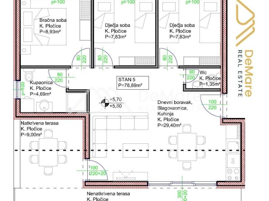 APARTMENT on the 2ND FLOOR with three bedrooms and a terrace